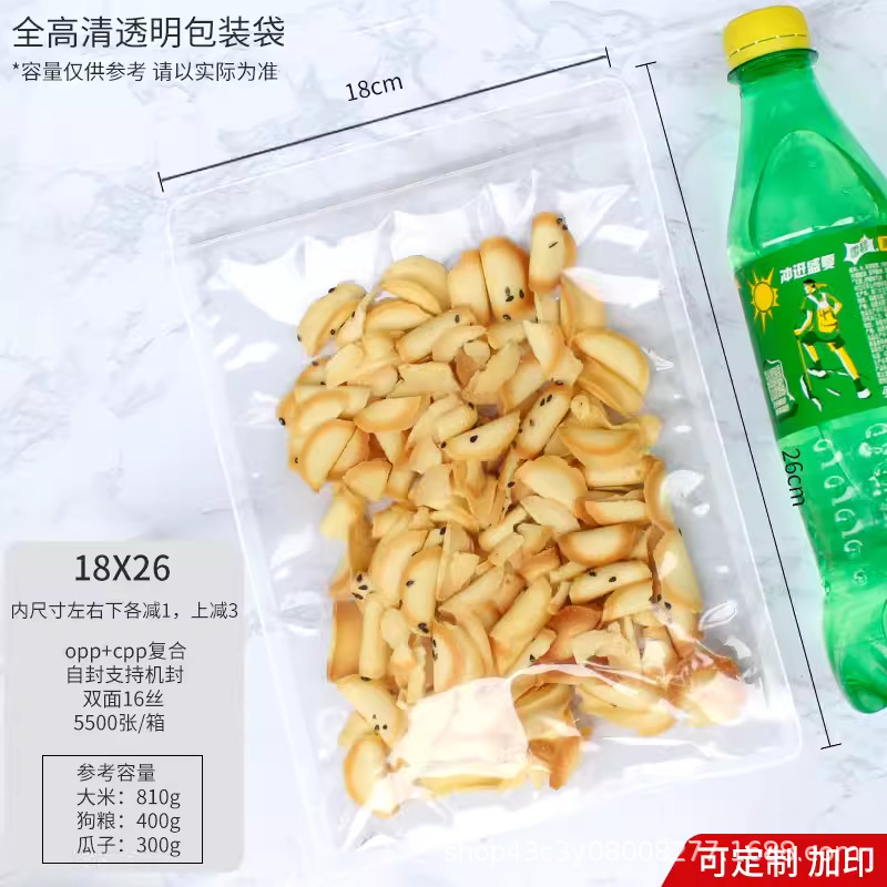 • 18x26 고화질 투명 비스탠딩 두꺼운 16 실크, 식품 등급 CPP+OPP, 기본 품목