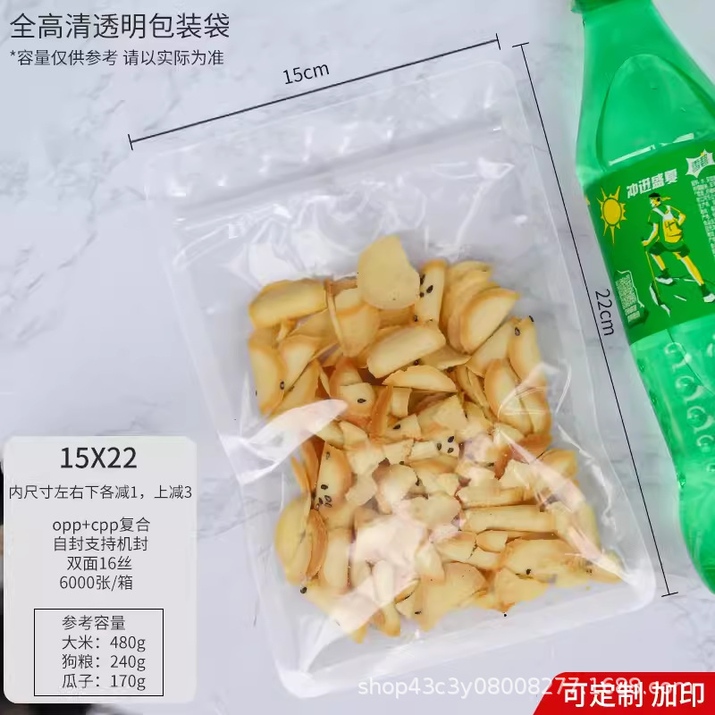 • 15x22 고화질 투명 비스탠딩 두꺼운 16 실크, 식품 등급 CPP+OPP, 기본 품목