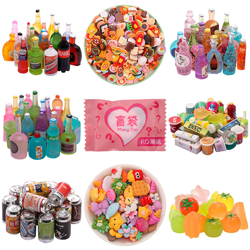 음식과 놀이 와인 병 블라인드 백 조수 놀이 아기 기계 미니 블라인드 박스 수지 보석 라이브 노점 럭키 백 작은 장난감 도매