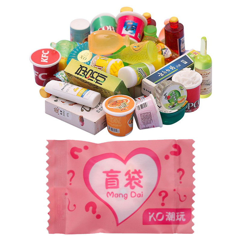 음식과 놀이 와인 병 블라인드 백 조수 놀이 아기 기계 미니 블라인드 박스 수지 보석 라이브 노점 럭키 백 작은 장난감 도매스토어 가기