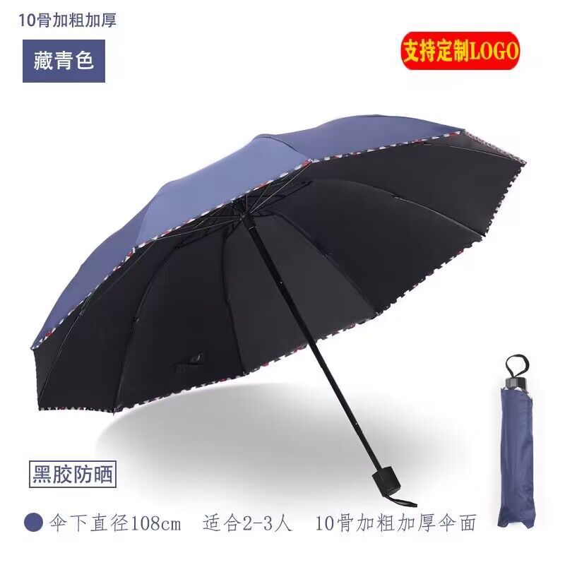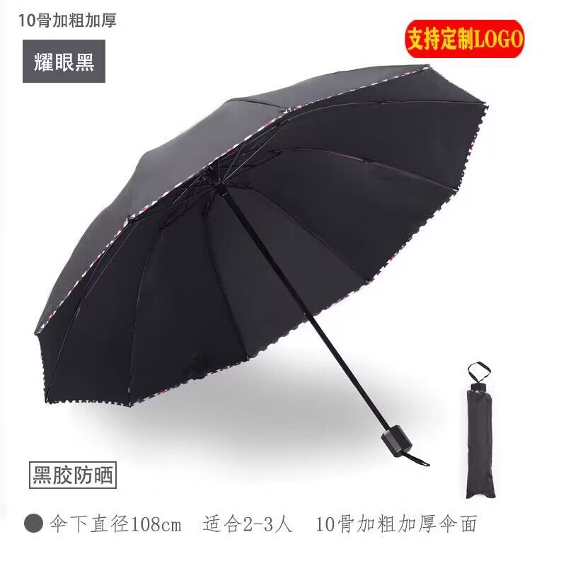 • 8 뼈 검은 고무 3 배 우산 색상 무작위 배달