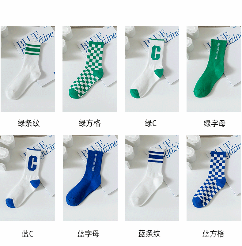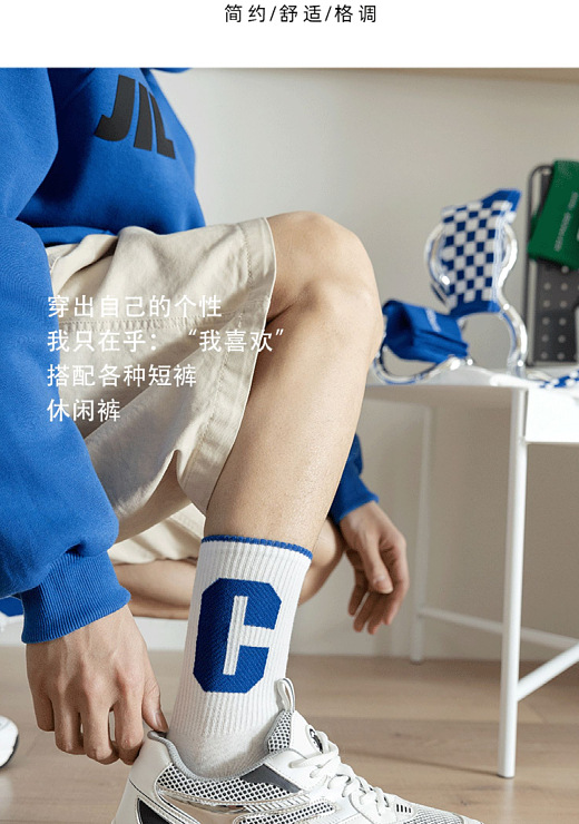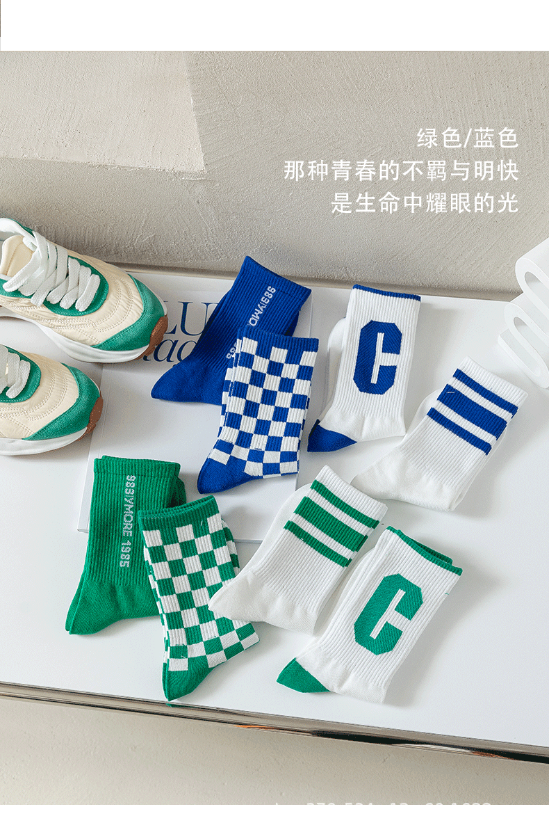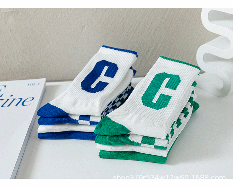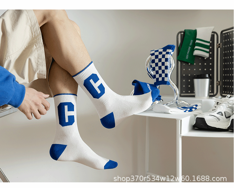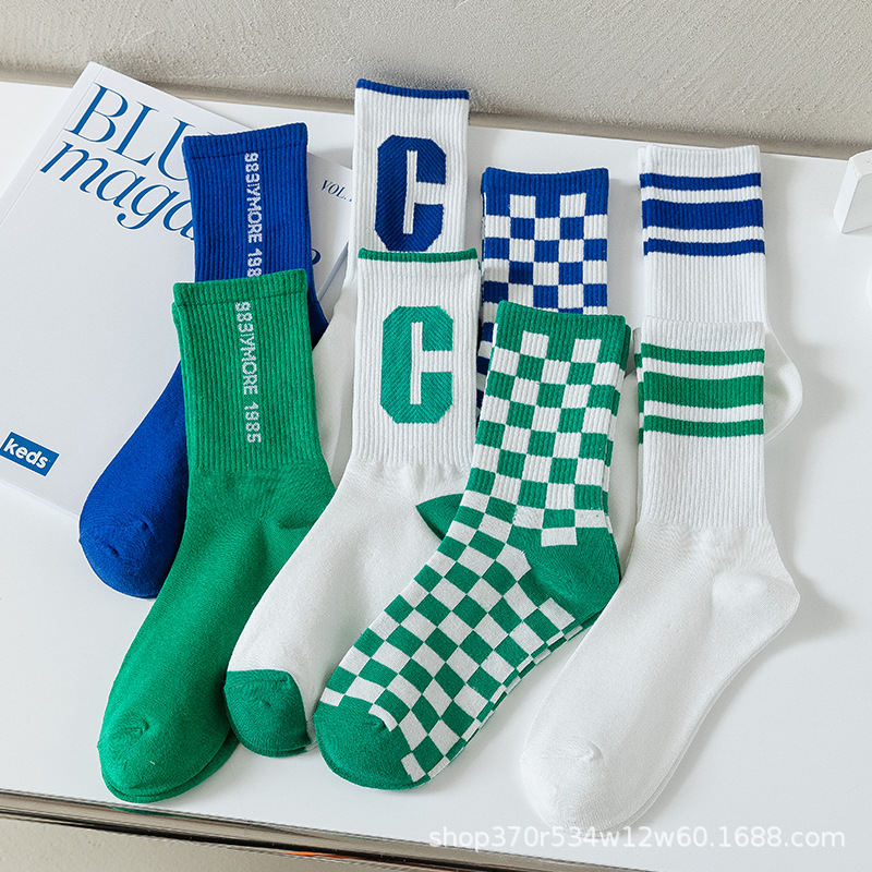 클라인 블루 타이드 양말 트렌디 한 중간 길이 양말 가을과 겨울 긴 길이 스포츠 양말에 빅 C 양말 바둑판 학생