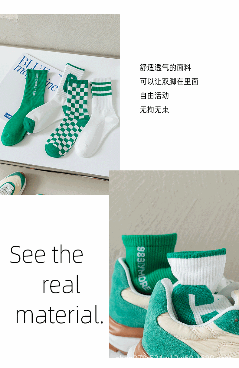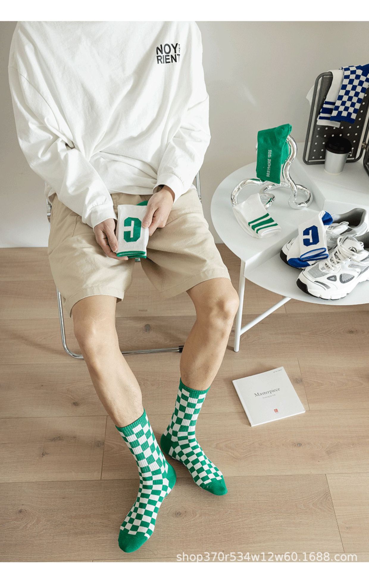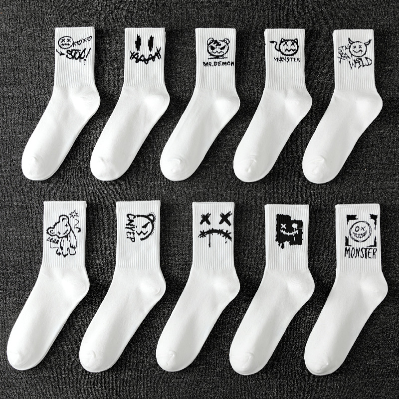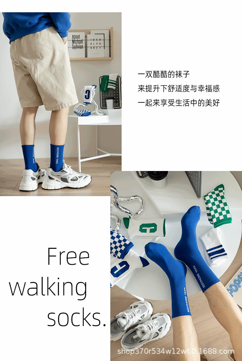 클라인 블루 타이드 양말 트렌디 한 중간 길이 양말 가을과 겨울 긴 길이 스포츠 양말에 빅 C 양말 바둑판 학생