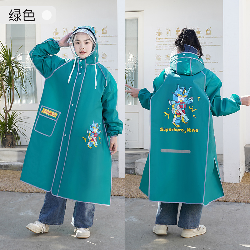 새로운 어린이 비옷 소년 소녀 큰 어린이 가방 2023 새로운 더블 모자 챙 초등학생 비옷