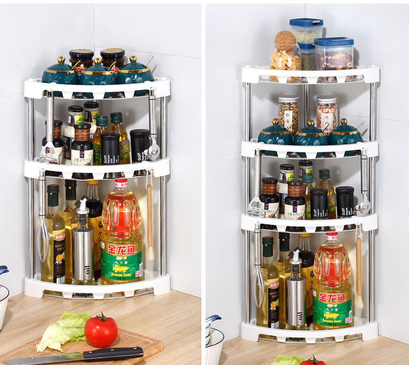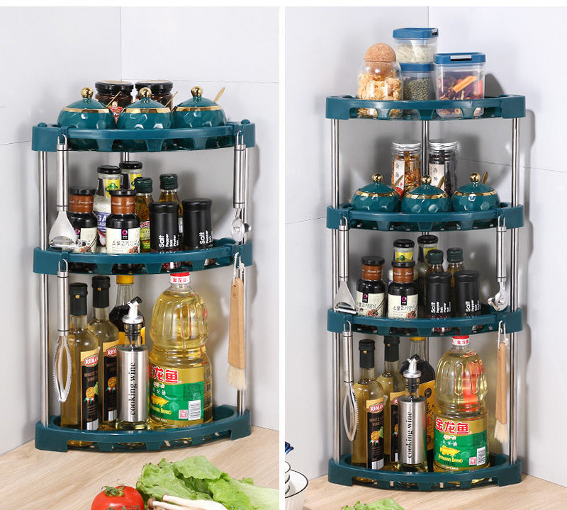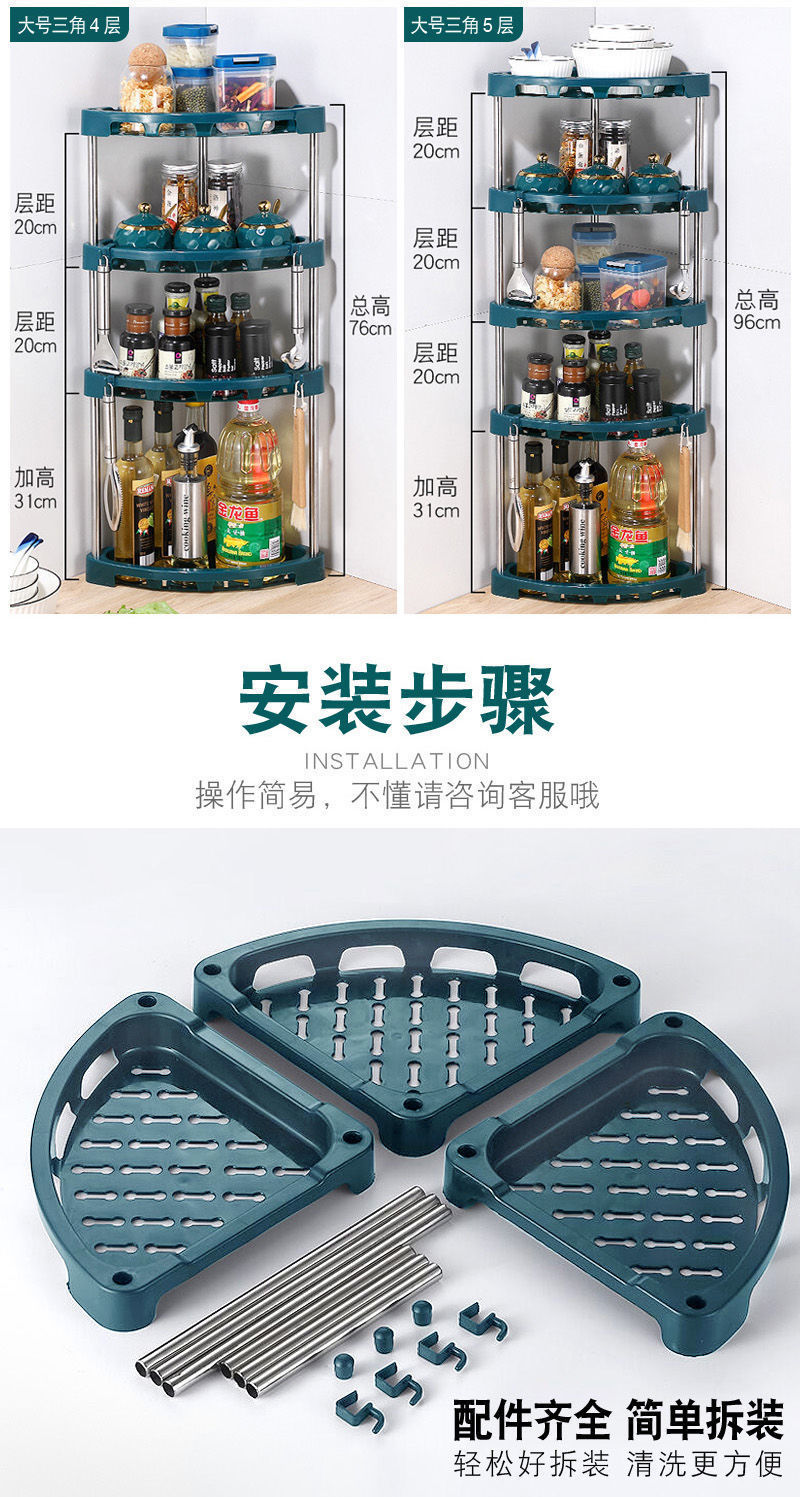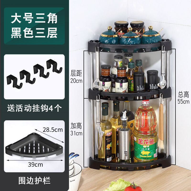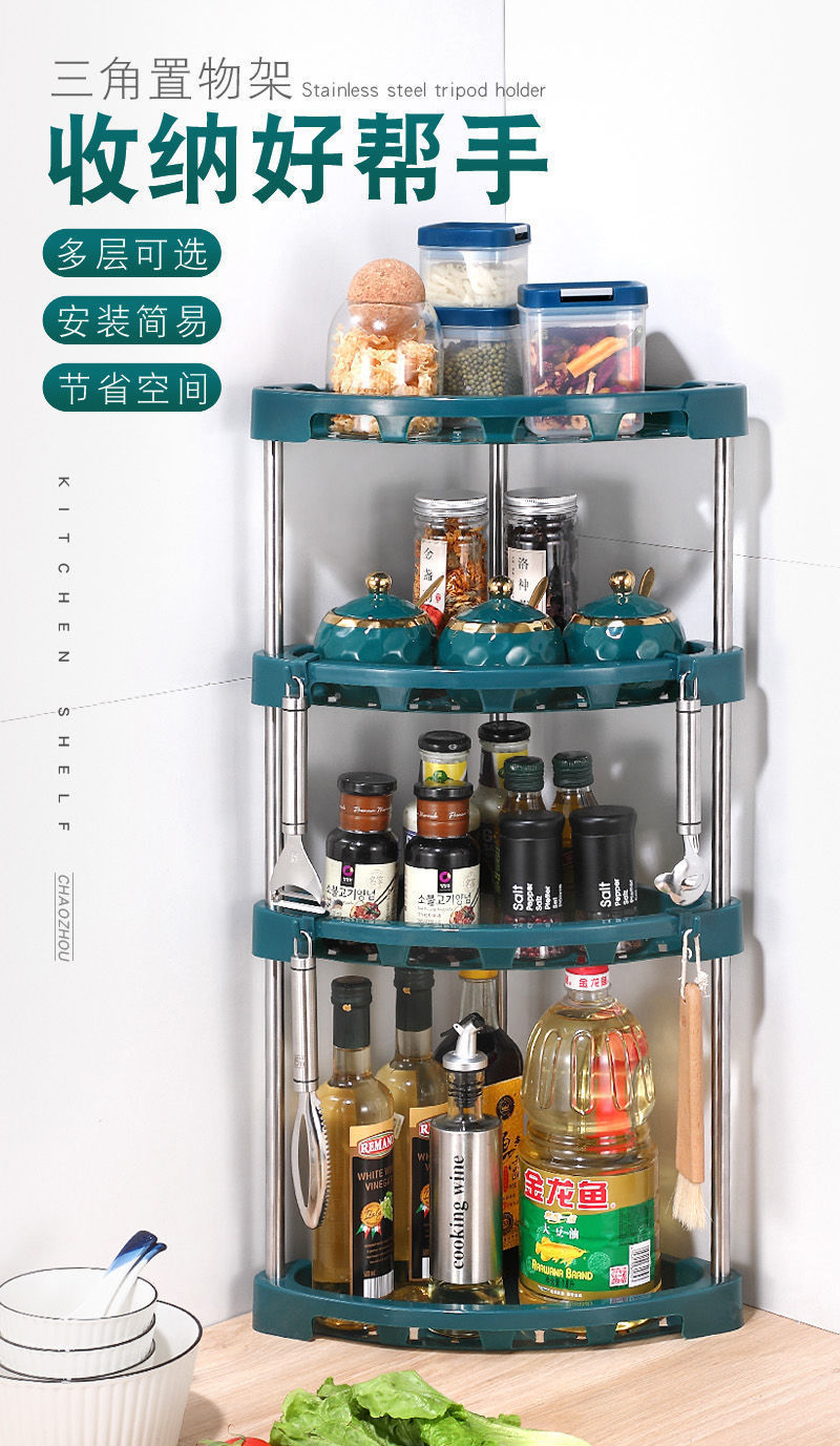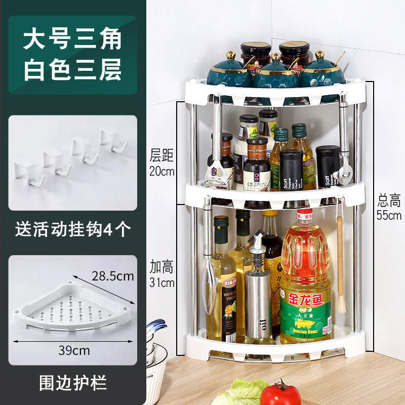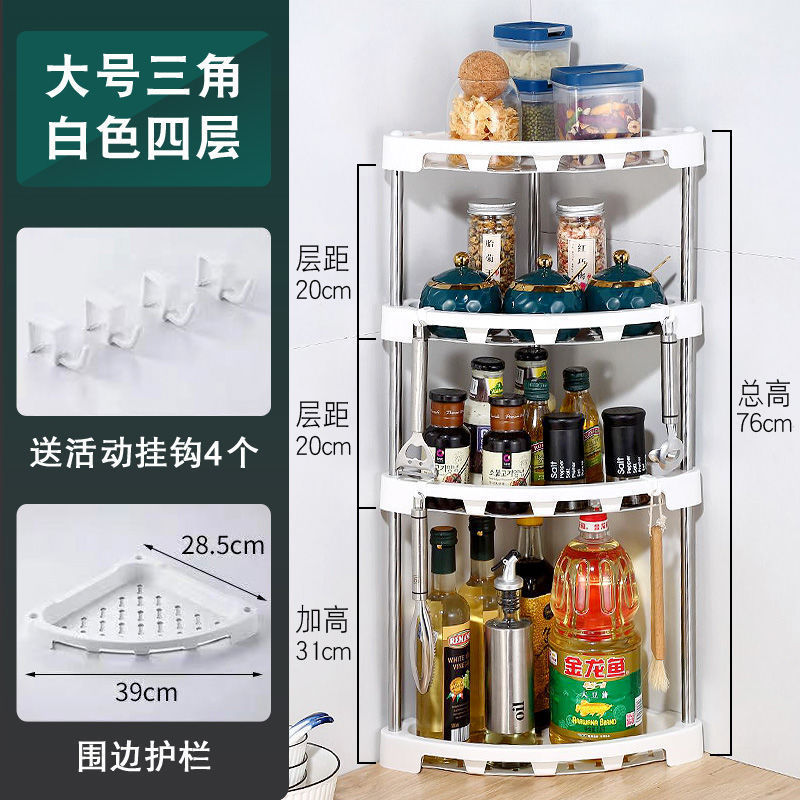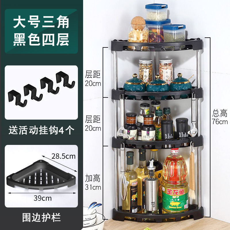 주방 수납 랙 코너 조미료 랙 조리대 바닥 다기능 조미료 용품 다층 플라스틱 보관 삼각대