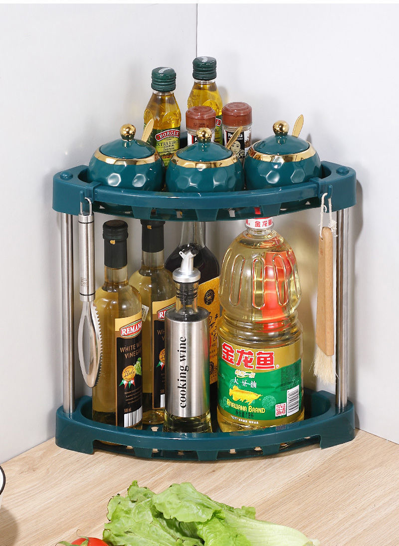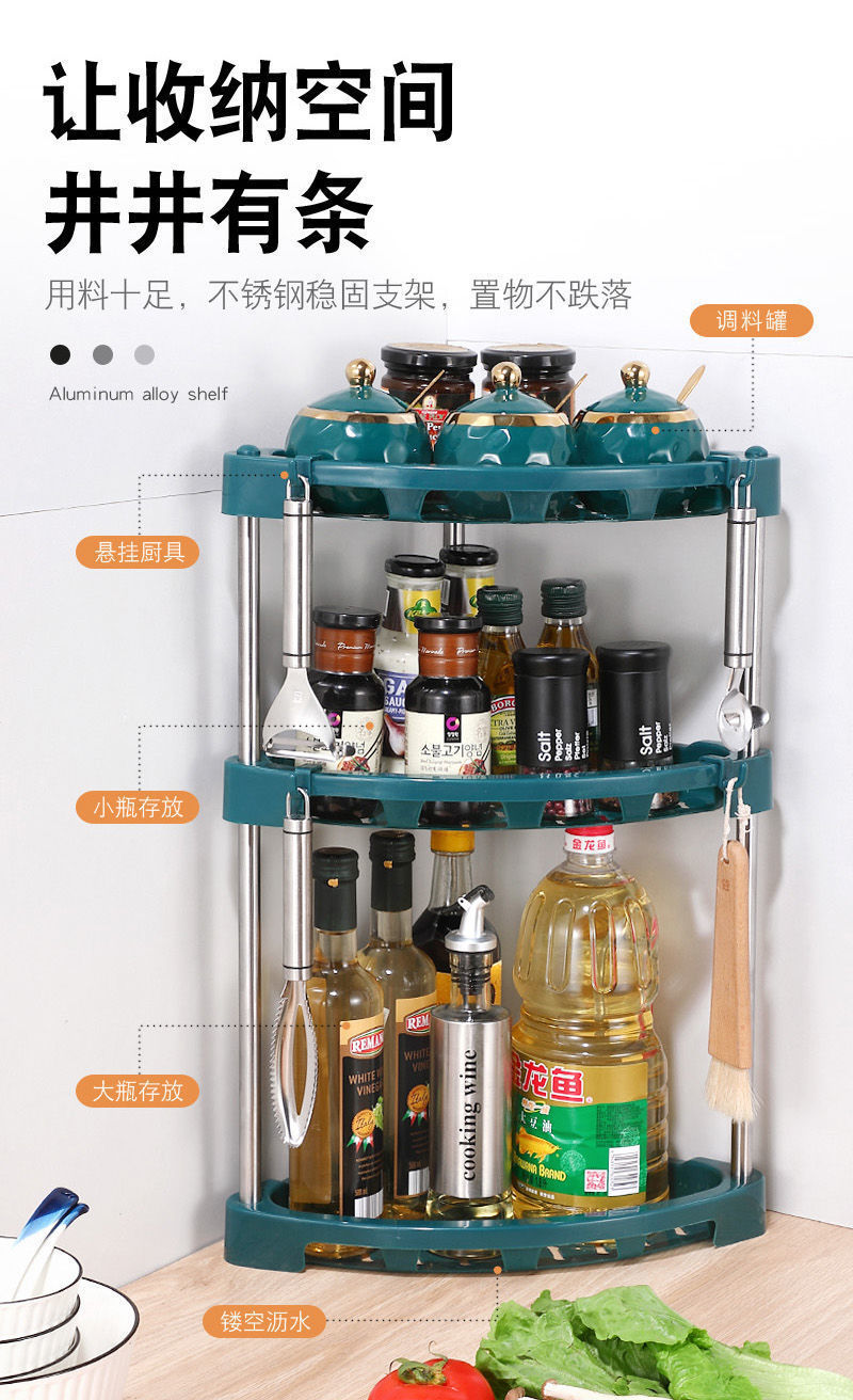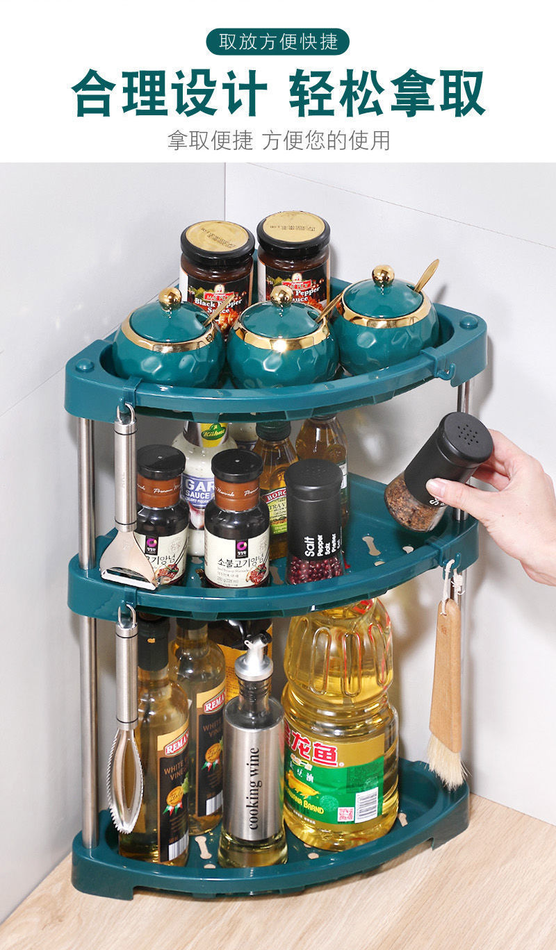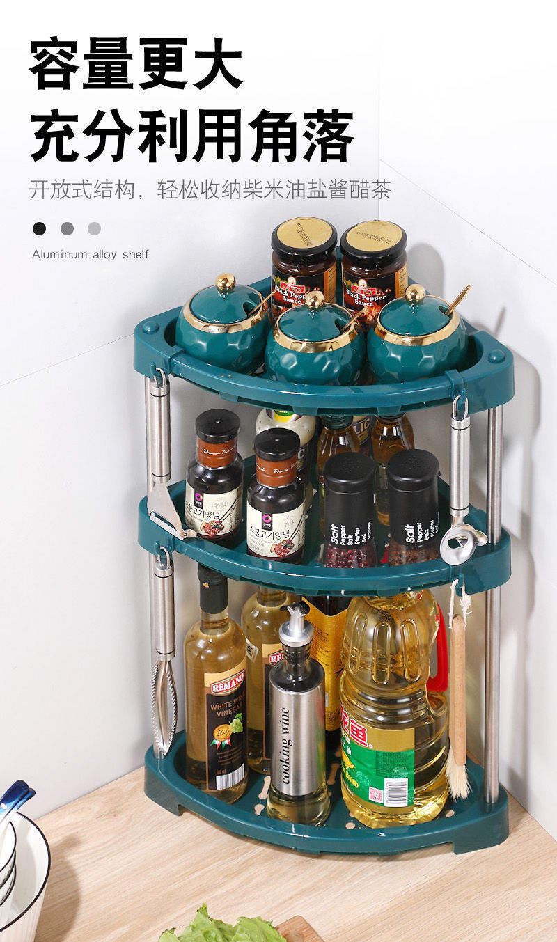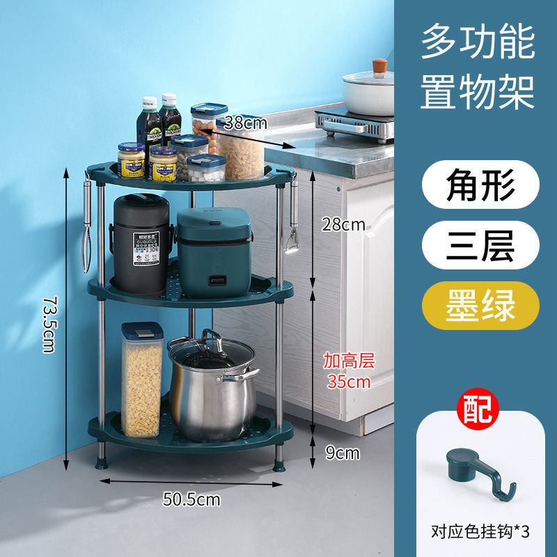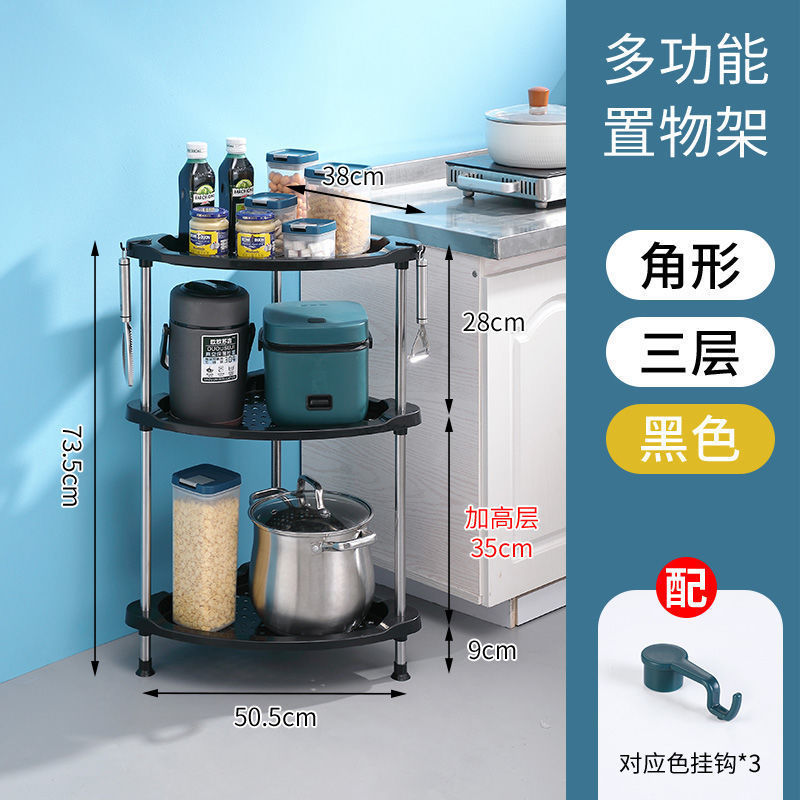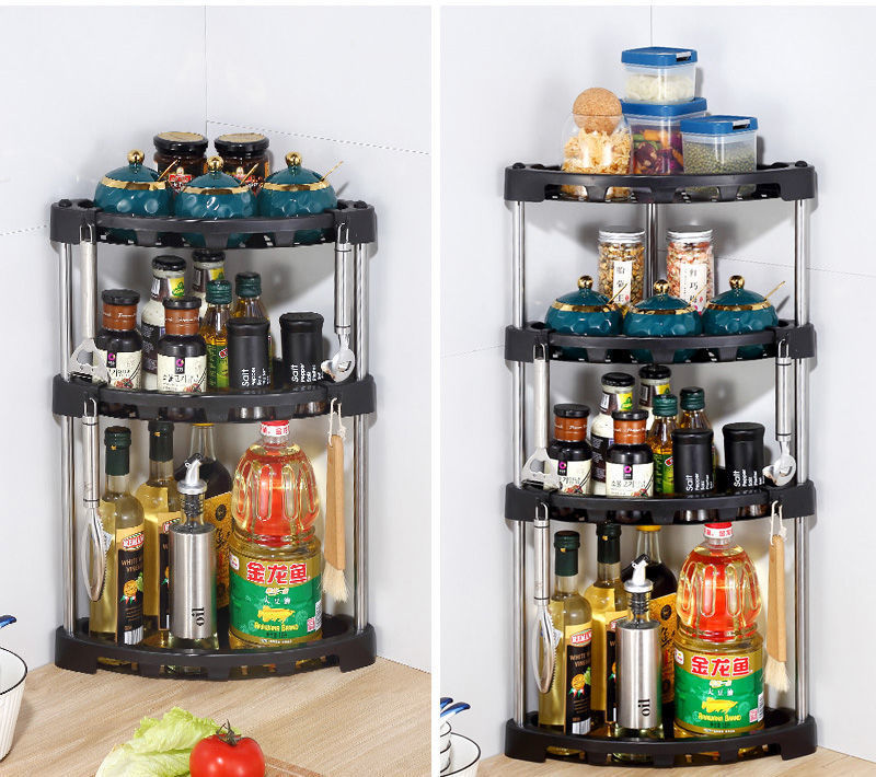 주방 수납 랙 코너 조미료 랙 조리대 바닥 다기능 조미료 용품 다층 플라스틱 보관 삼각대