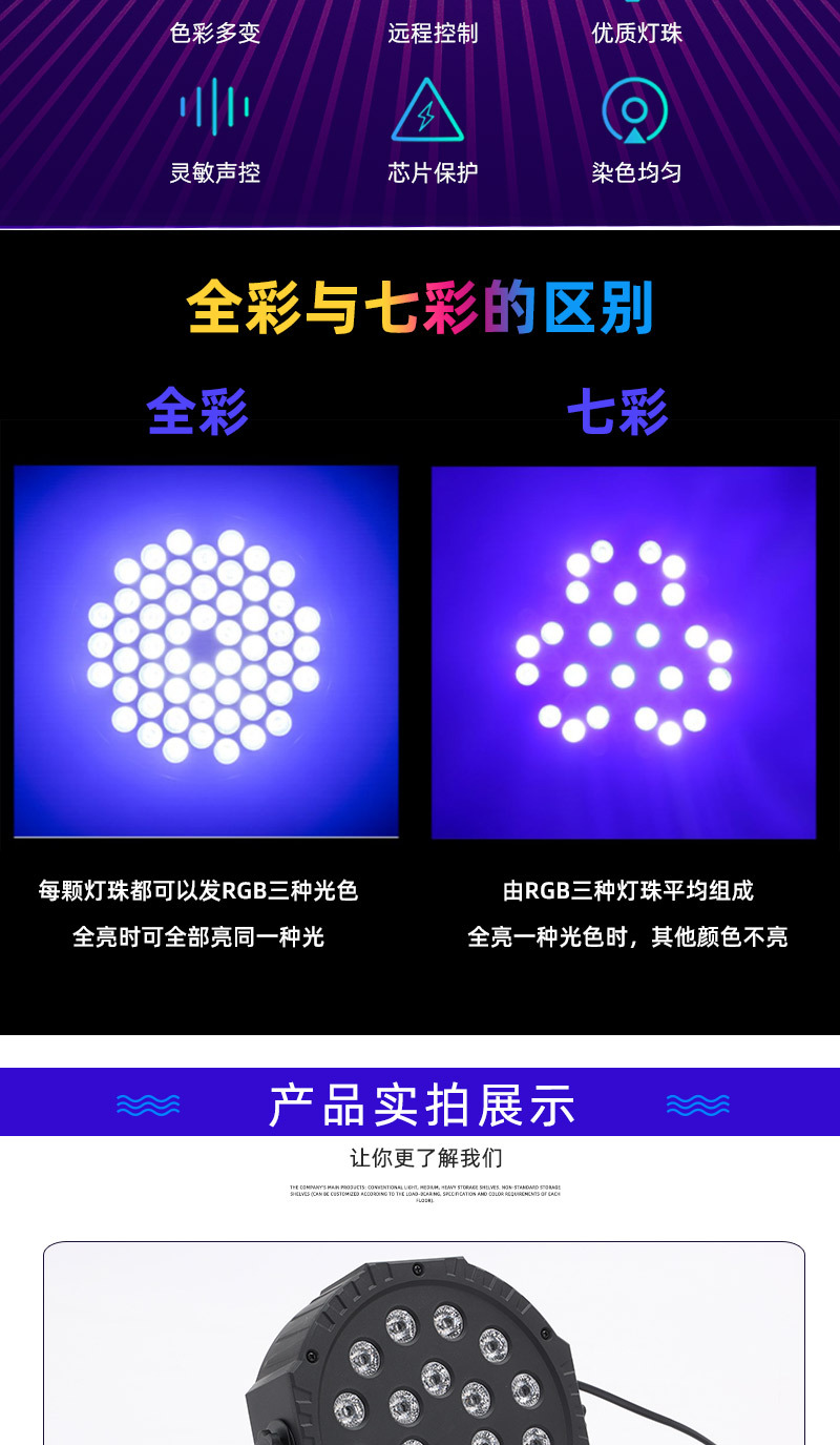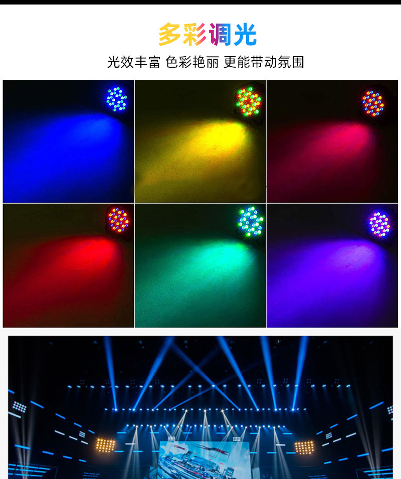 국경을 넘는 무대 조명 장비 다채로운 빔 라이트 LED 초박형 파 라이트 보라색 라이트 다채로운 염색 플래시 라이트스토어 가기