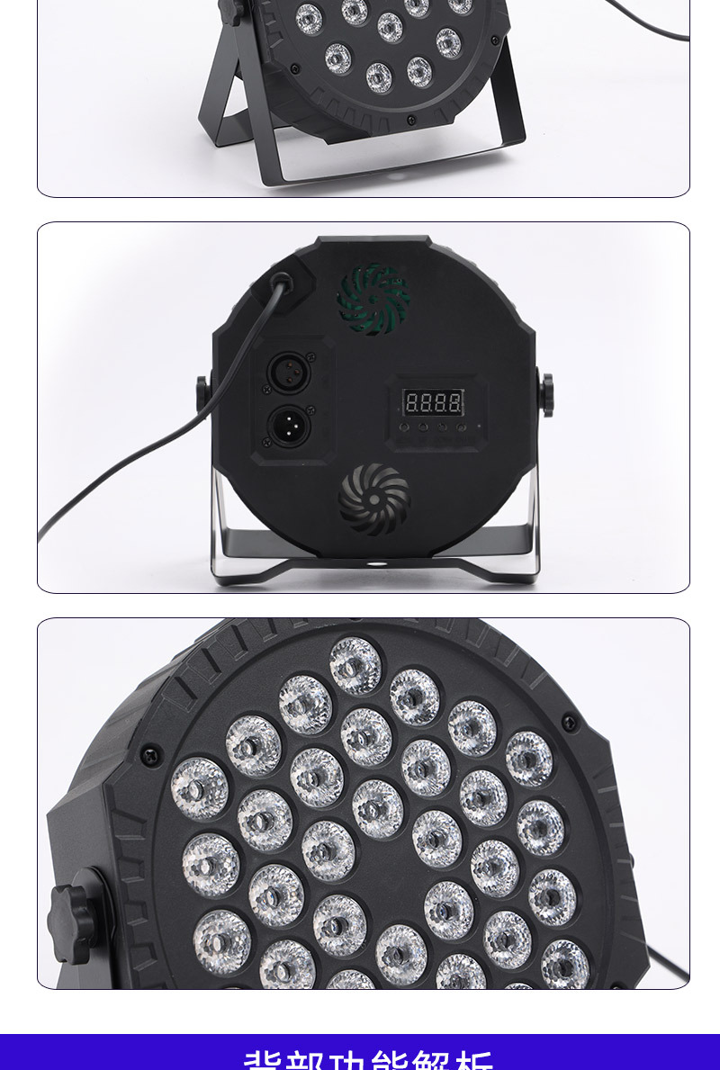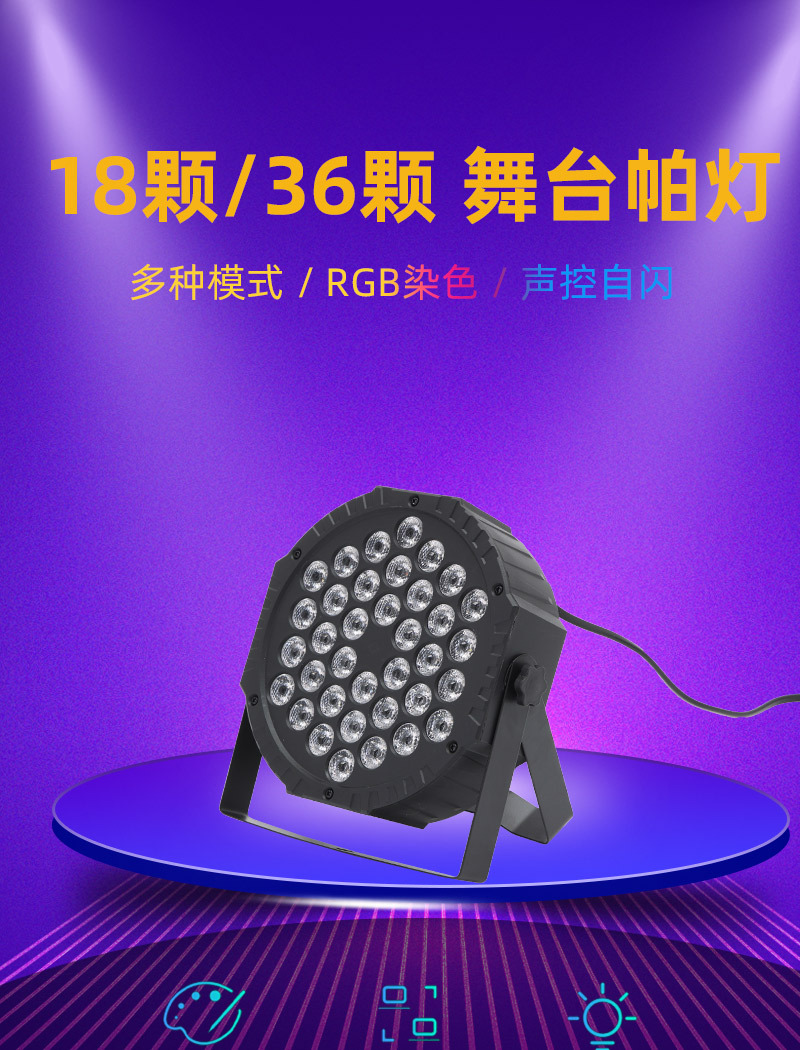 국경을 넘는 무대 조명 장비 다채로운 빔 라이트 LED 초박형 파 라이트 보라색 라이트 다채로운 염색 플래시 라이트