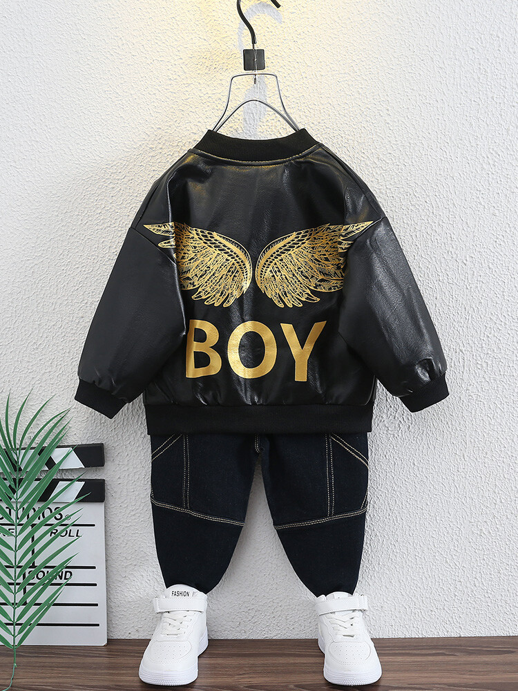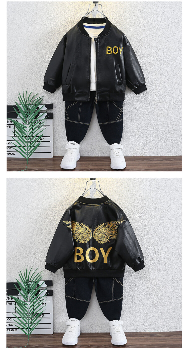 소년 가죽 자켓 2023 봄과 가을 새로운 어린이 유행 멋진 Duffian 잘 생긴 재킷 소년 서양 스타일 오토바이 의류 대외 무역