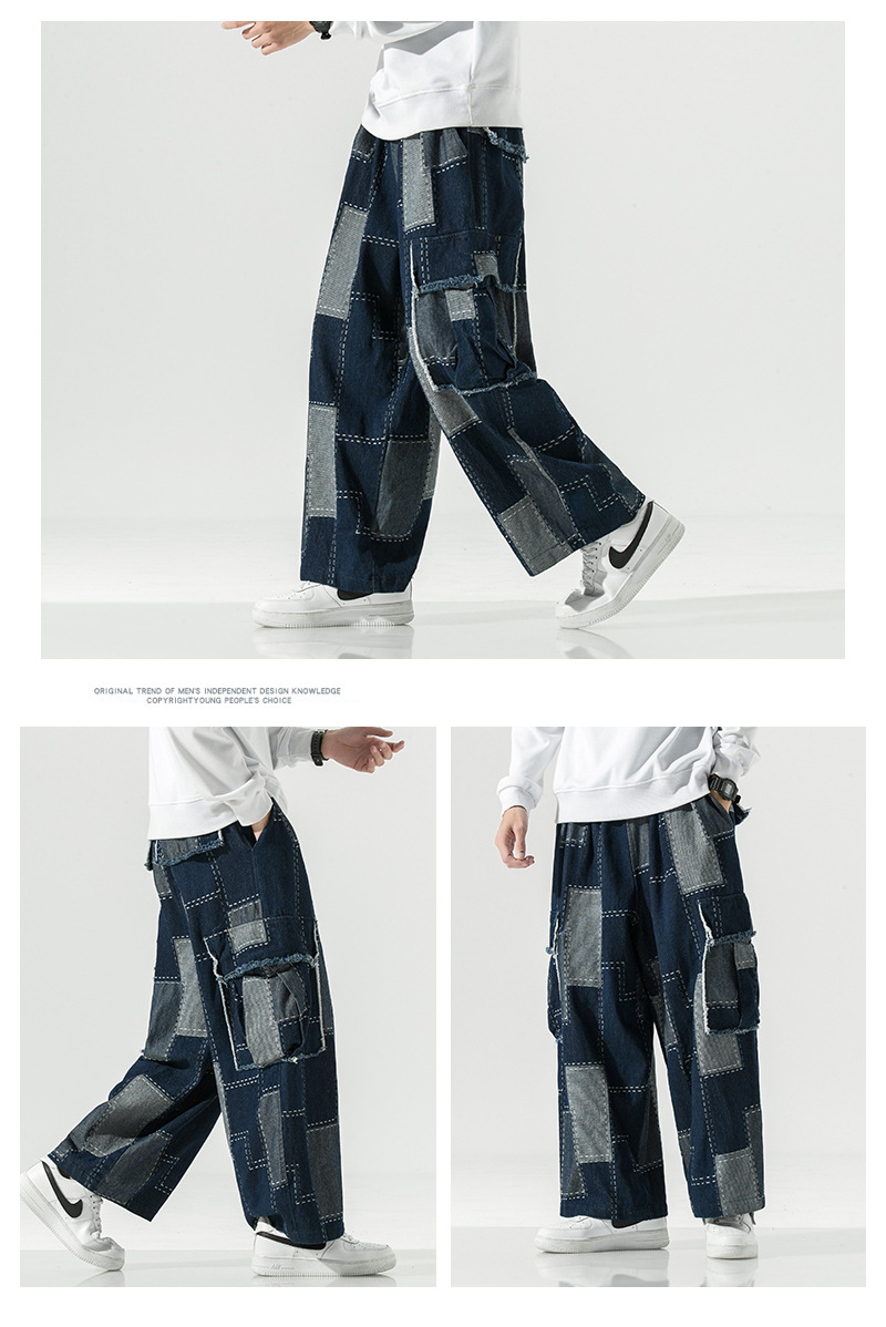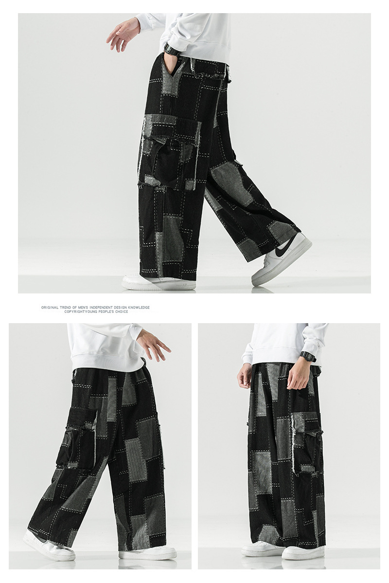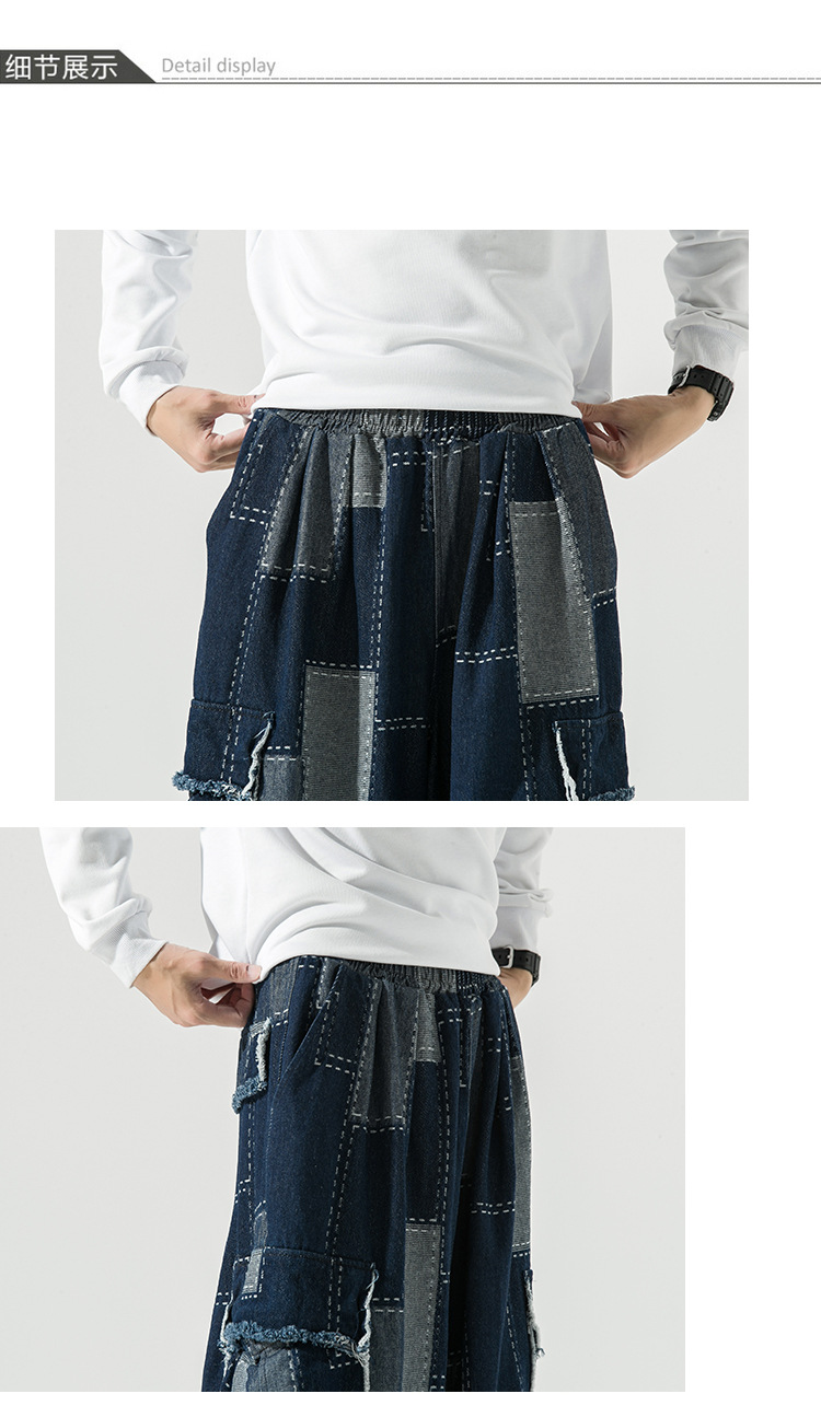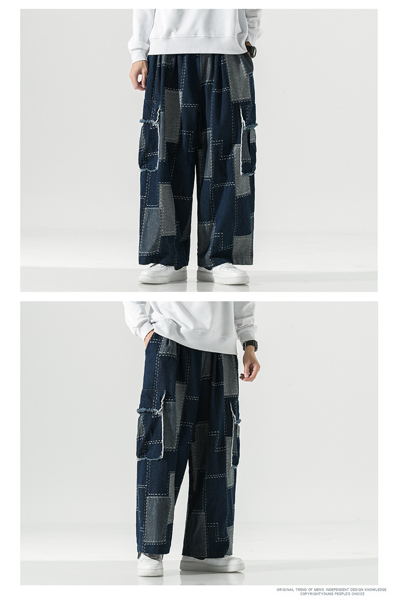 2023 봄 새로운 워싱 거지 청바지 스티치 바지 일본 플러스 사이즈 느슨한 남성 캐주얼 바지 트렌디스토어 가기