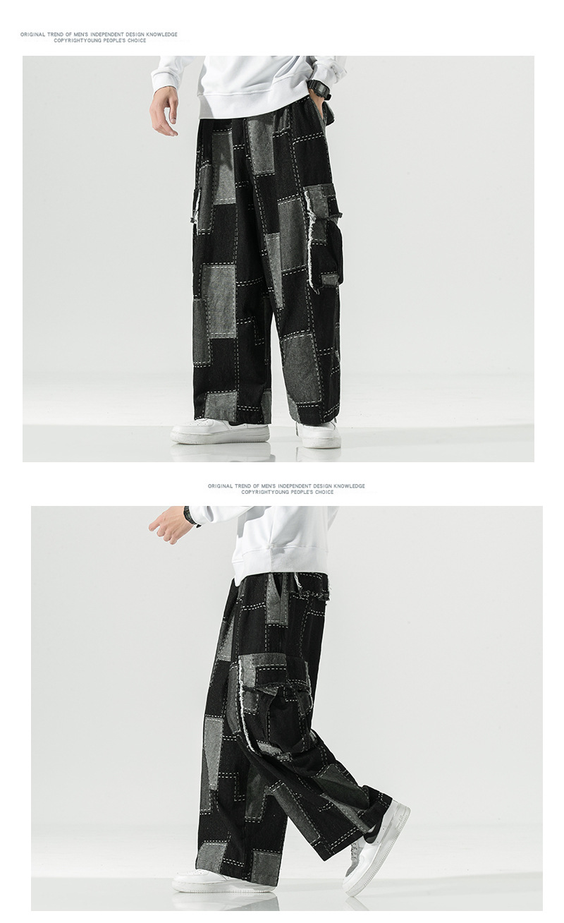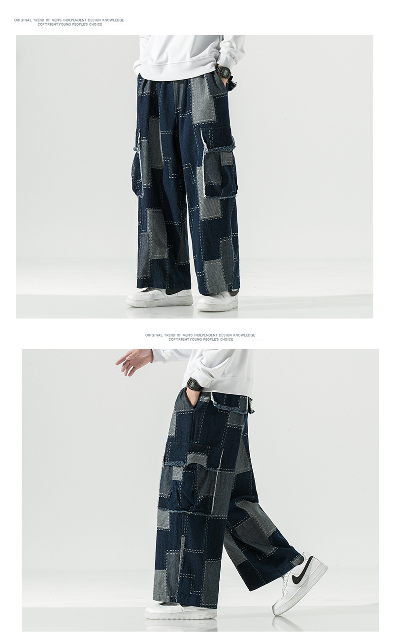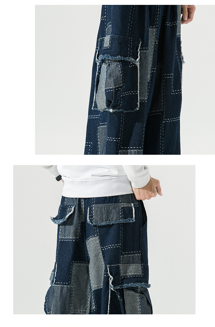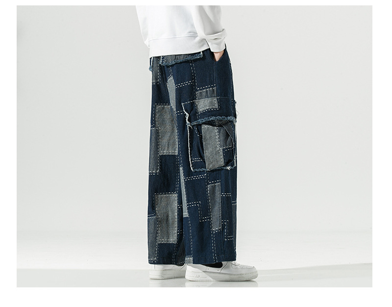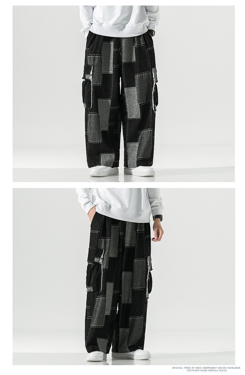 2023 봄 새로운 워싱 거지 청바지 스티치 바지 일본 플러스 사이즈 느슨한 남성 캐주얼 바지 트렌디스토어 가기