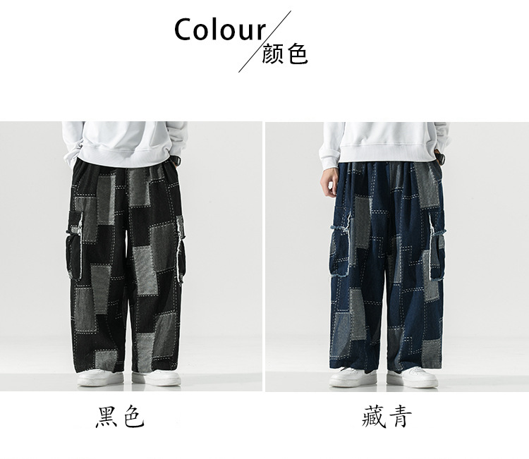 2023 봄 새로운 워싱 거지 청바지 스티치 바지 일본 플러스 사이즈 느슨한 남성 캐주얼 바지 트렌디