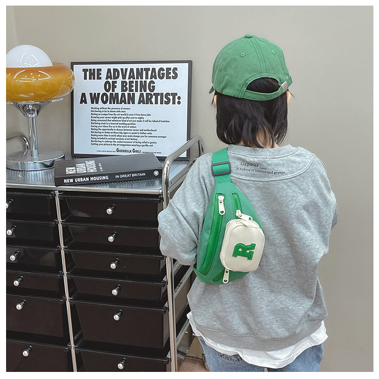 트렌디 한 알파벳 야구 한국식 귀여운 가슴 가방 대비 색상 사이버 인기있는 소년의 잘 생긴 동전 지갑 외출을위한 경량 소녀의 패니 백스토어 가기