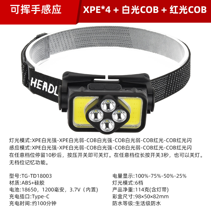 头灯 感应头灯 LED头灯 头灯长续航锂电 电筒 迷你头灯 强光头灯 户外头灯 头戴式照明灯