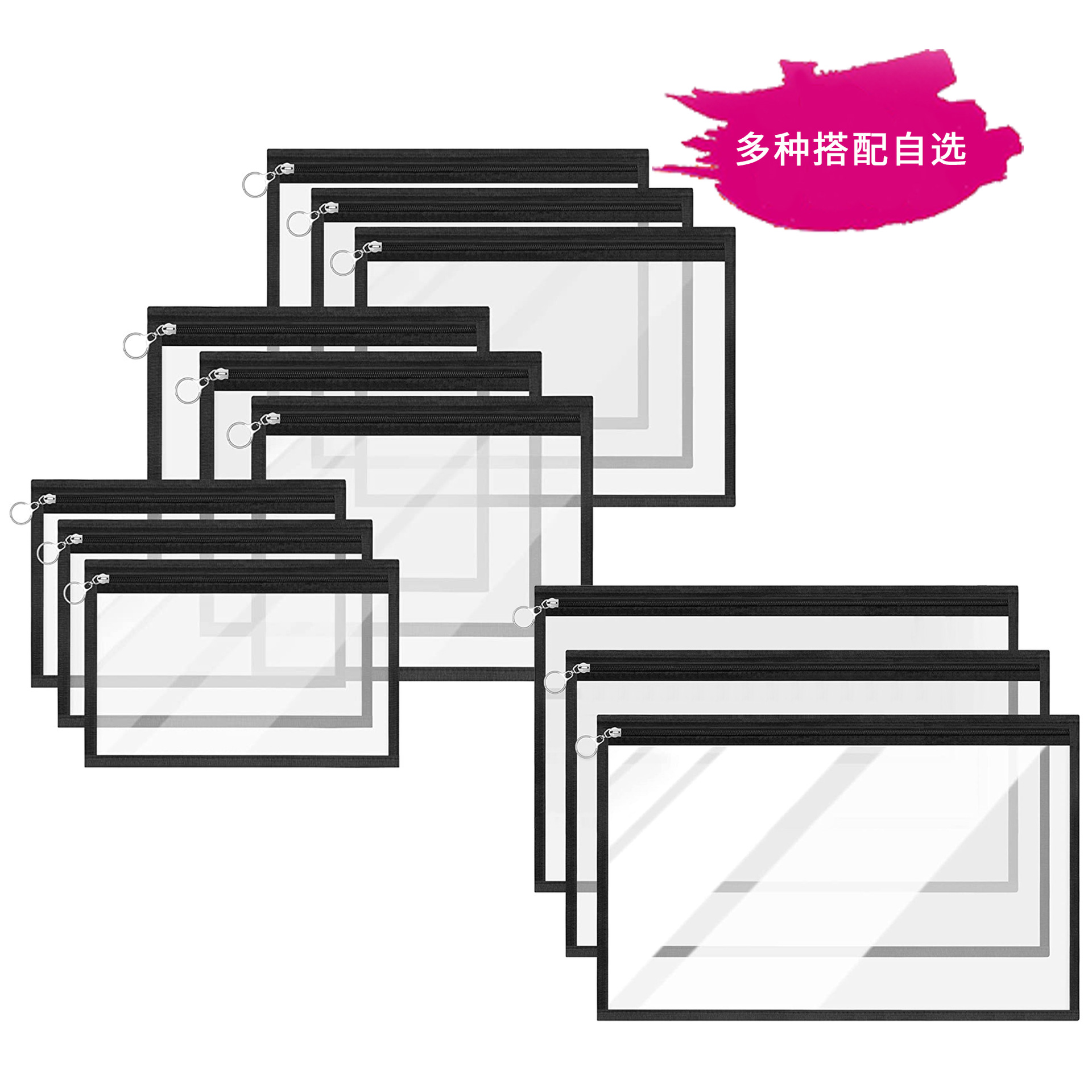 亚马逊amazon热销TOP新品多尺寸PVC黑色透明铅笔袋收纳拉链袋