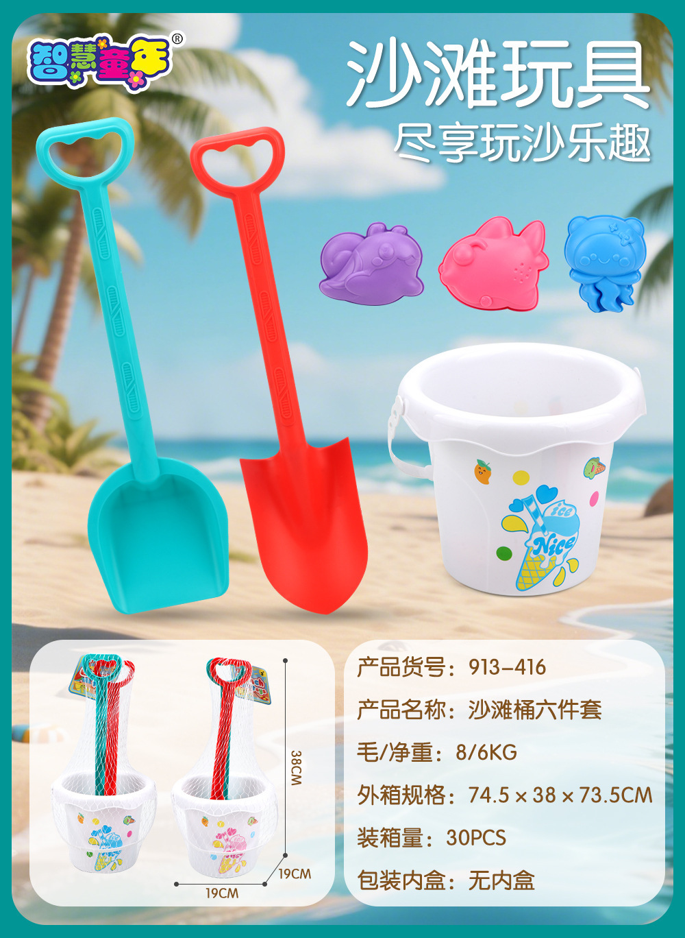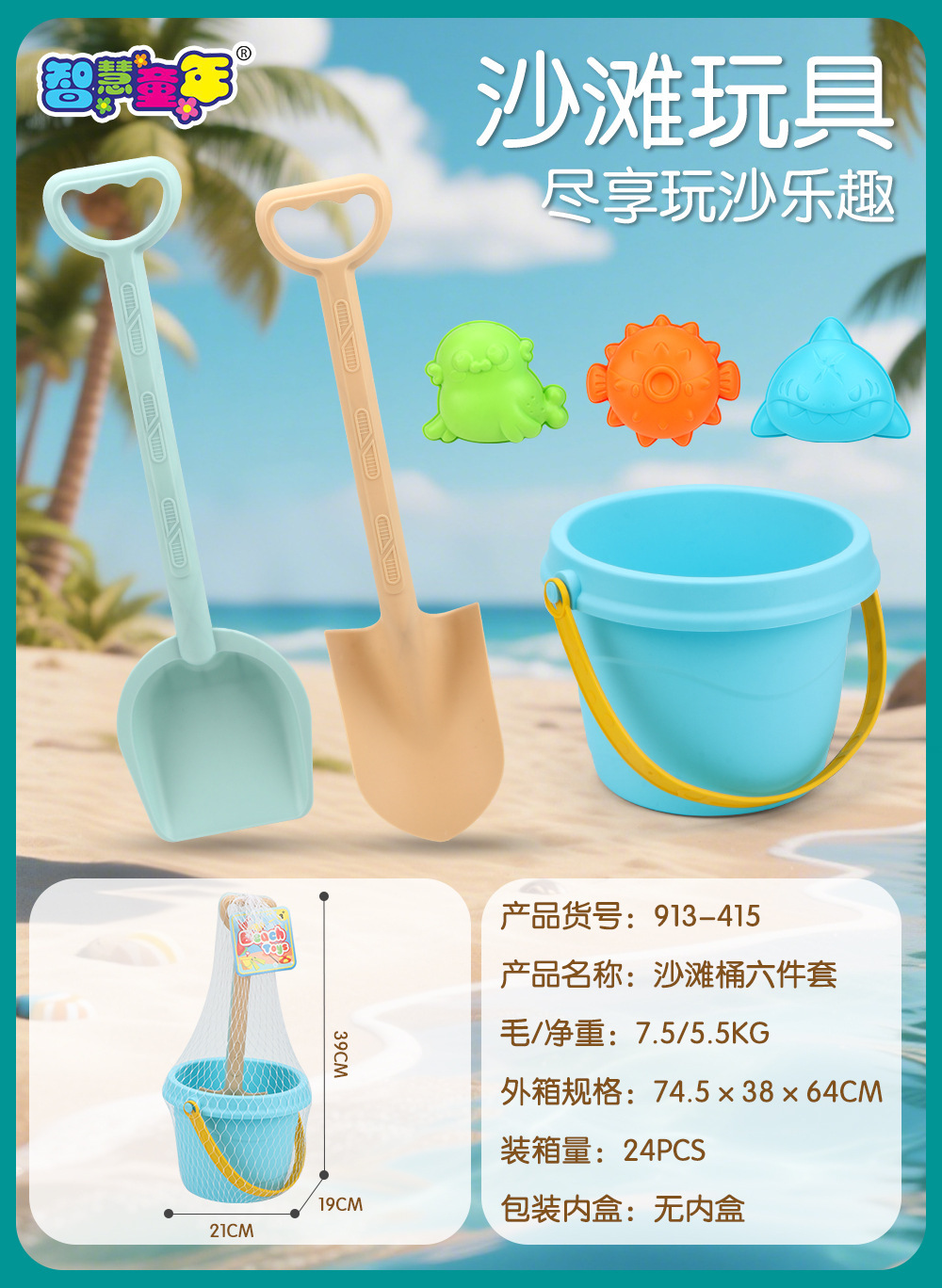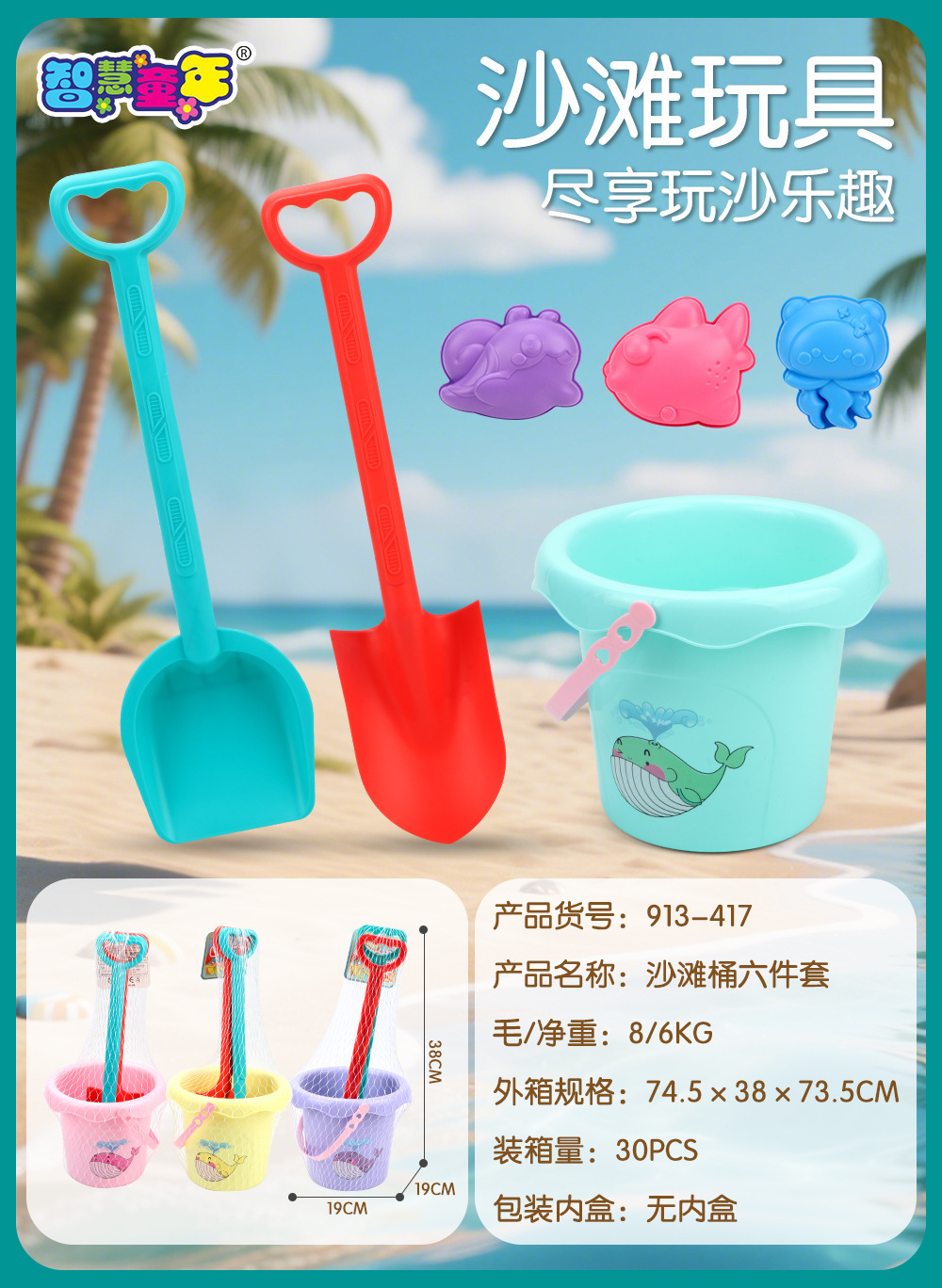 • 913-417 4색 물고기 대형 모래놀이 버킷 6종 세트