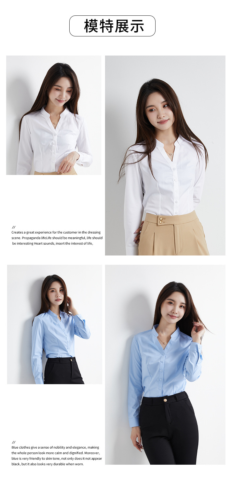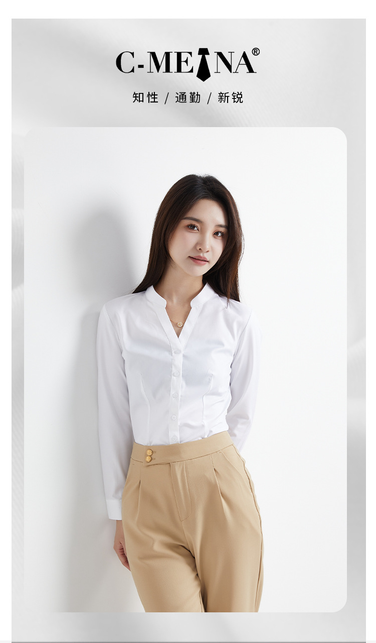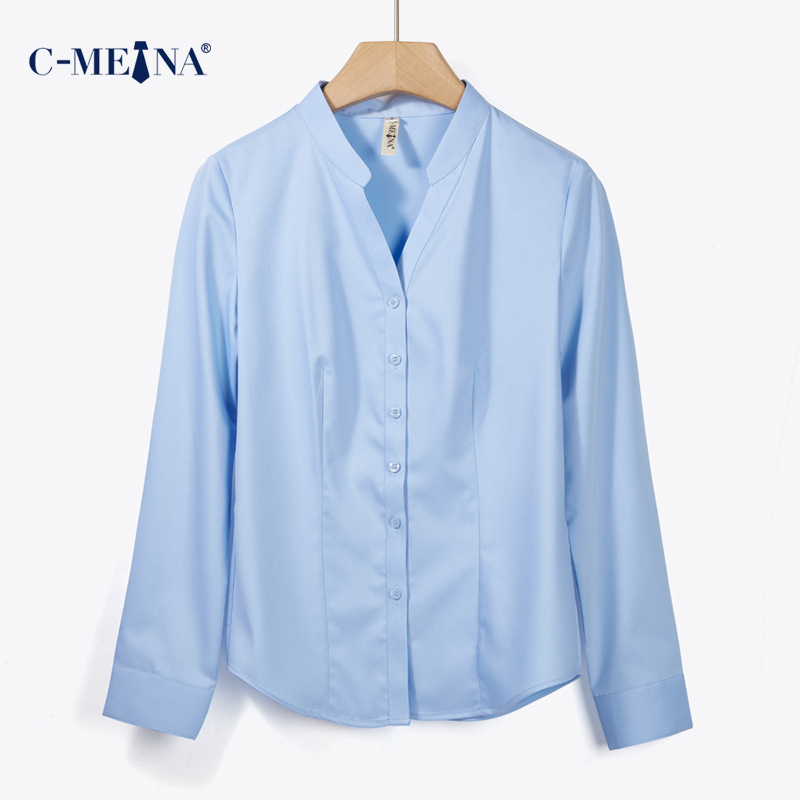 여름 신상 여성 긴팔 셔츠, 여성스러운 통근룩, 슬림핏 패션 대나무 섬유 셔츠 탑, 정장스토어 가기