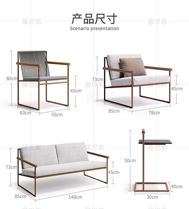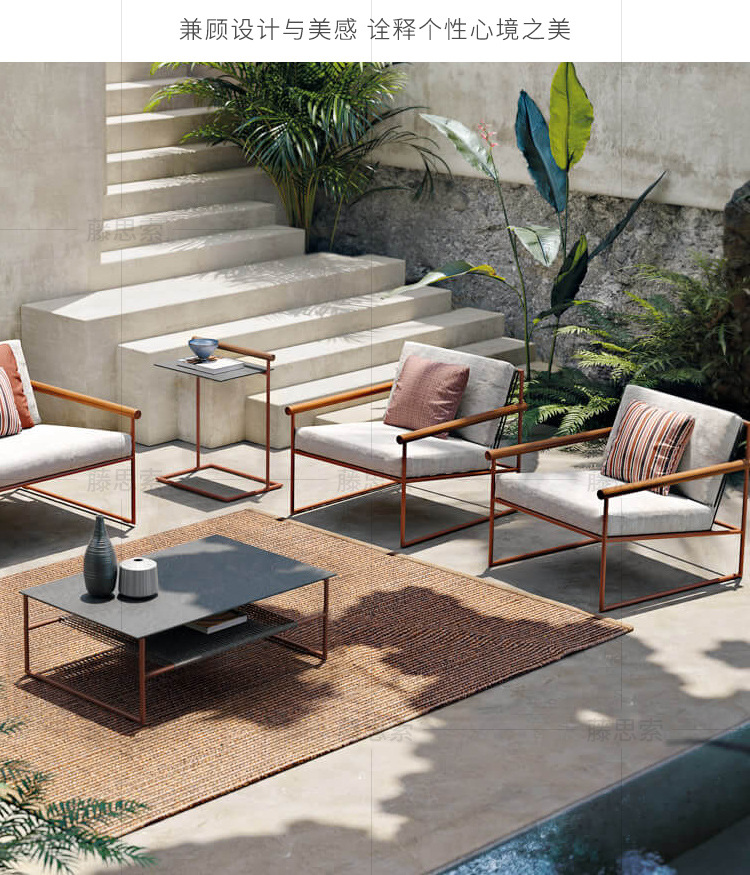 야외 테이블과 의자 정원 테라스 로프 편직 테이블과 의자 홈스테이 안뜰 야외 야외 가구 로프 편직 야외 소파스토어 가기