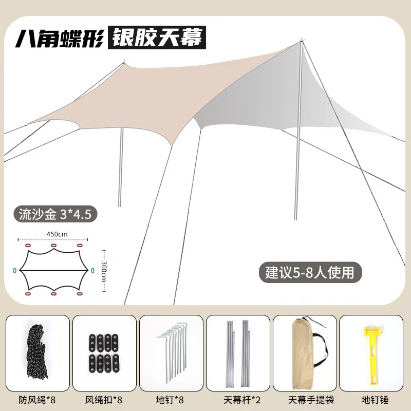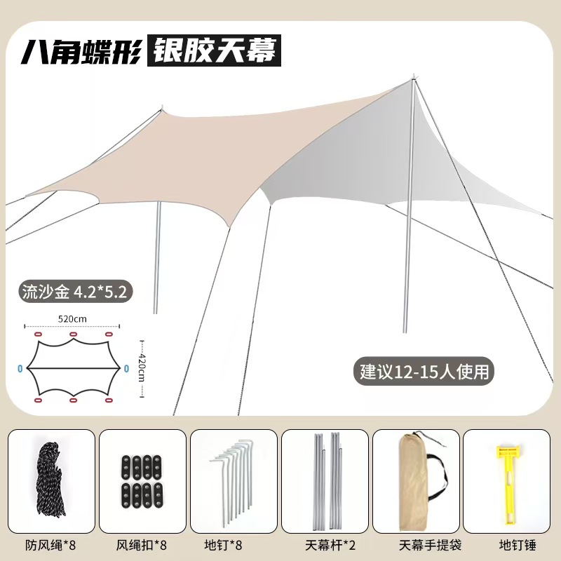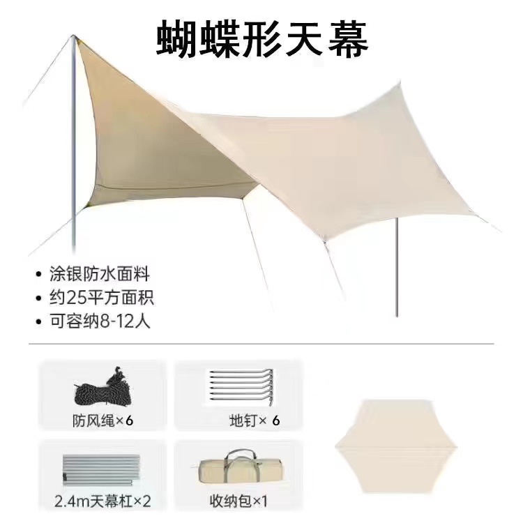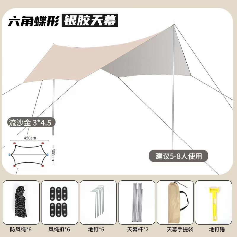 야외 캐노피 나비 육각형 선 스크린 실버 코팅 된 나비 캐노피 나비 육각형 캐노피 간단한 텐트 클리어런스