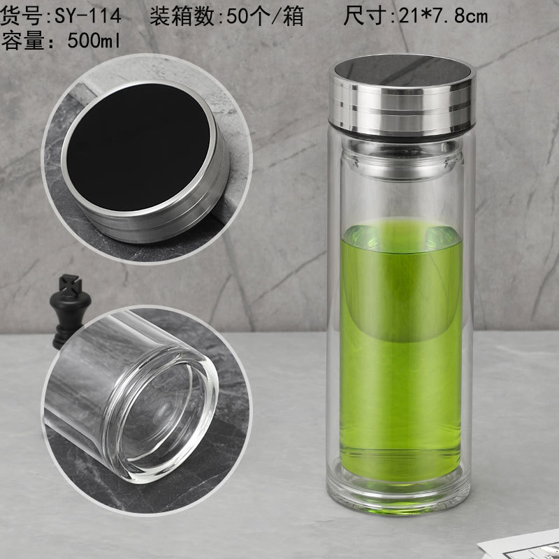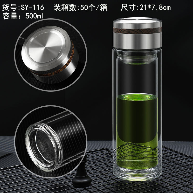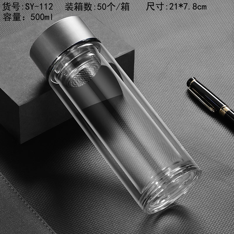 500ml 이중 유리 제조 업체 도매 컵 레터링 컵 로고 인쇄 광고 컵 기념품 선물