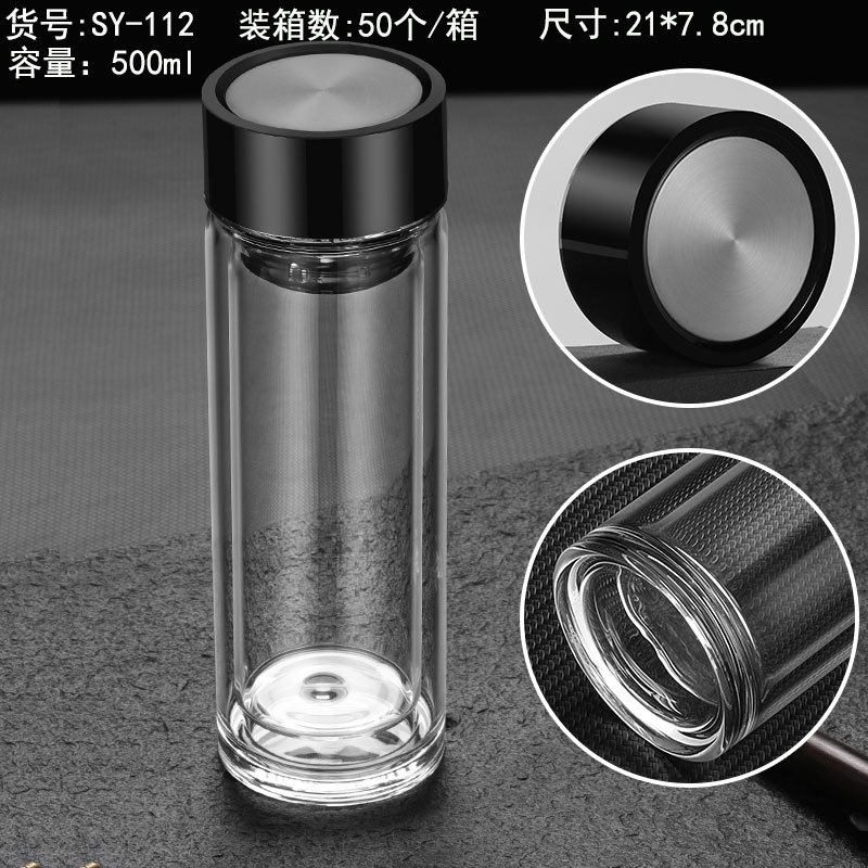 500ml 이중 유리 제조 업체 도매 컵 레터링 컵 로고 인쇄 광고 컵 기념품 선물스토어 가기