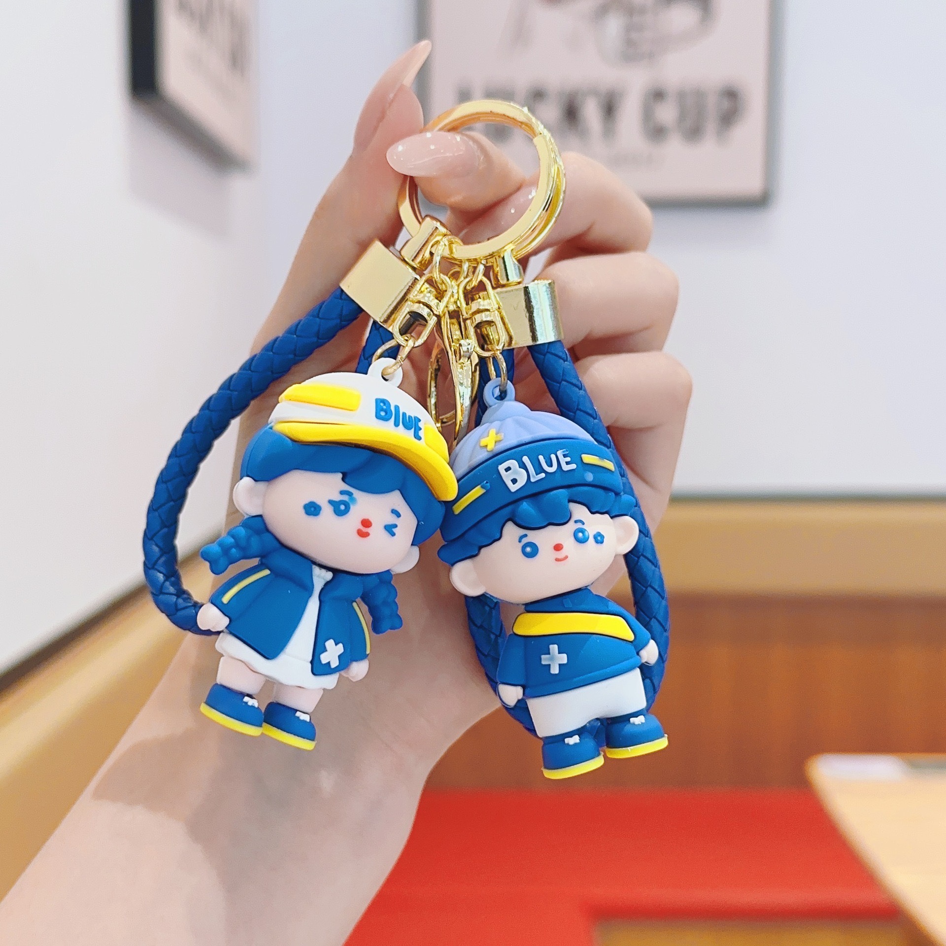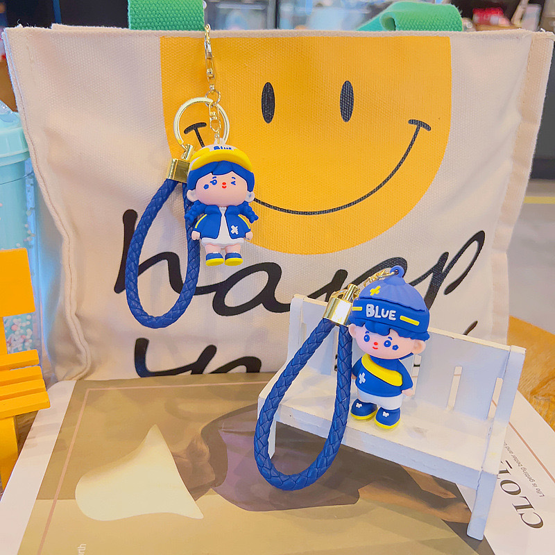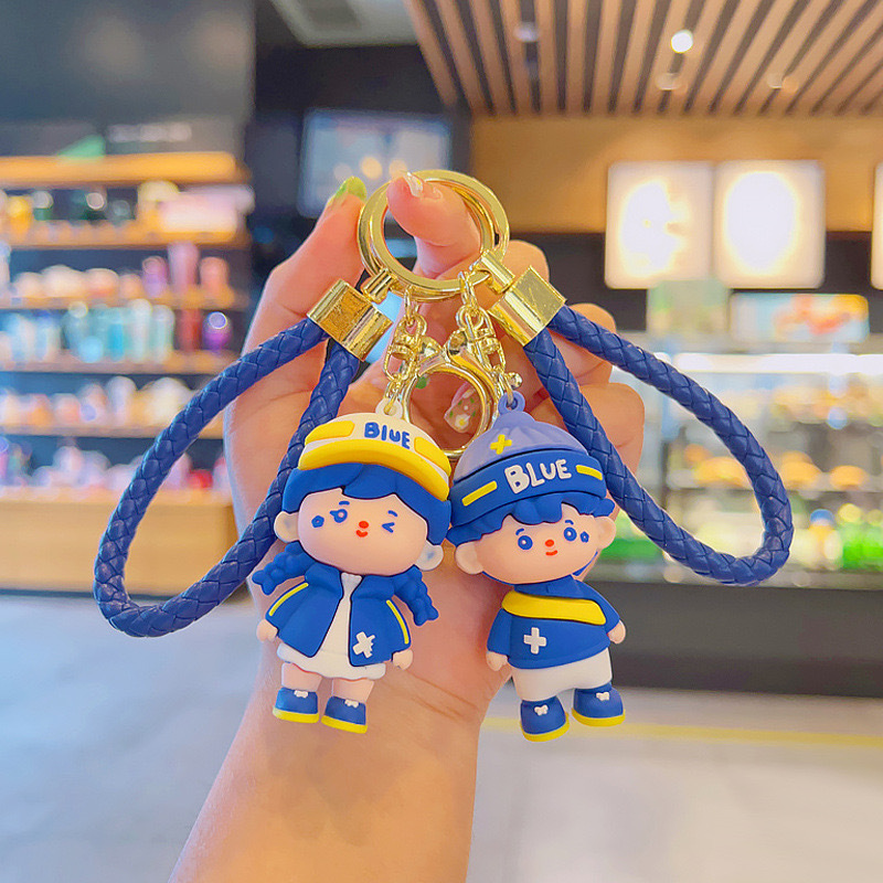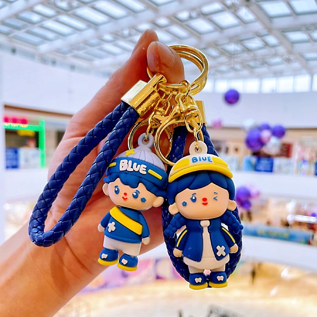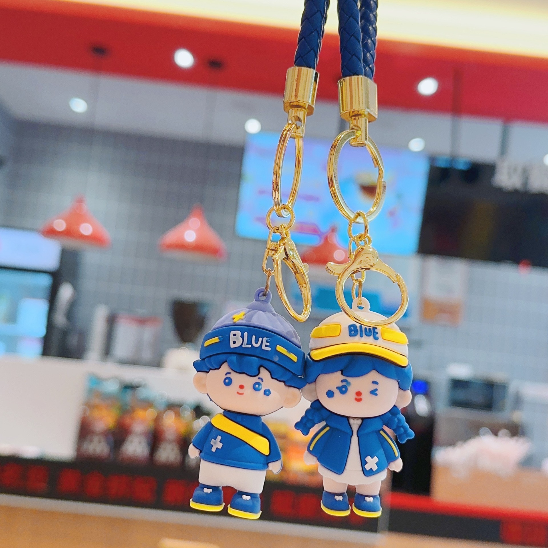 클라인 블루 키체인 귀여운 소년 소녀 인형 키체인 커플 가방 책가방 작은 장식품 도매스토어 가기