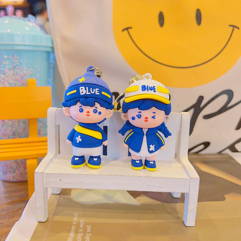 클라인 블루 키체인 귀여운 소년 소녀 인형 키체인 커플 가방 책가방 작은 장식품 도매