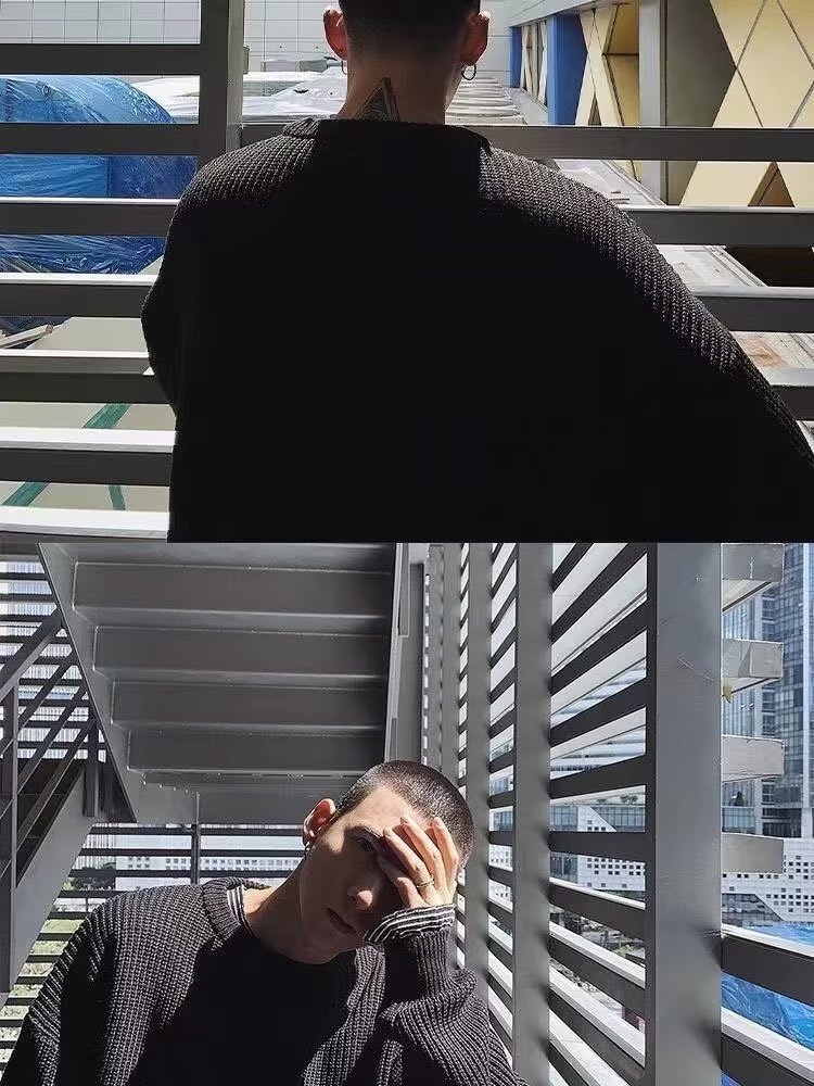 가을과 겨울 트렌디 브랜드 솔리드 컬러 내부 라운드 넥 스웨터 남자의 한국 스타일 느슨한 캐주얼 레트로 트렌디 스웨터 탑스토어 가기