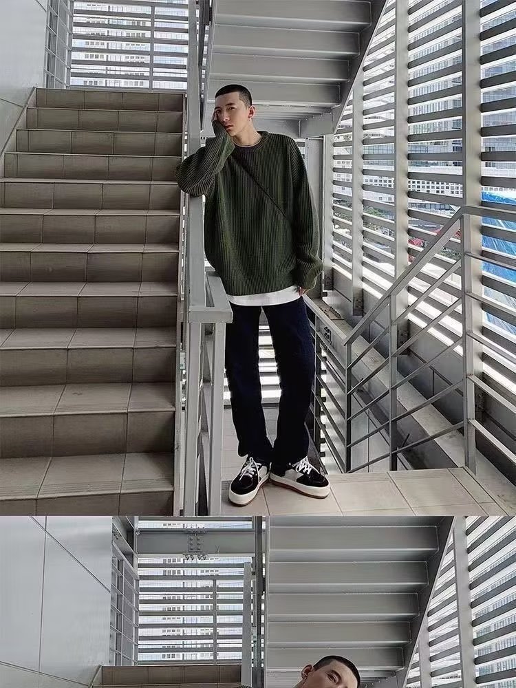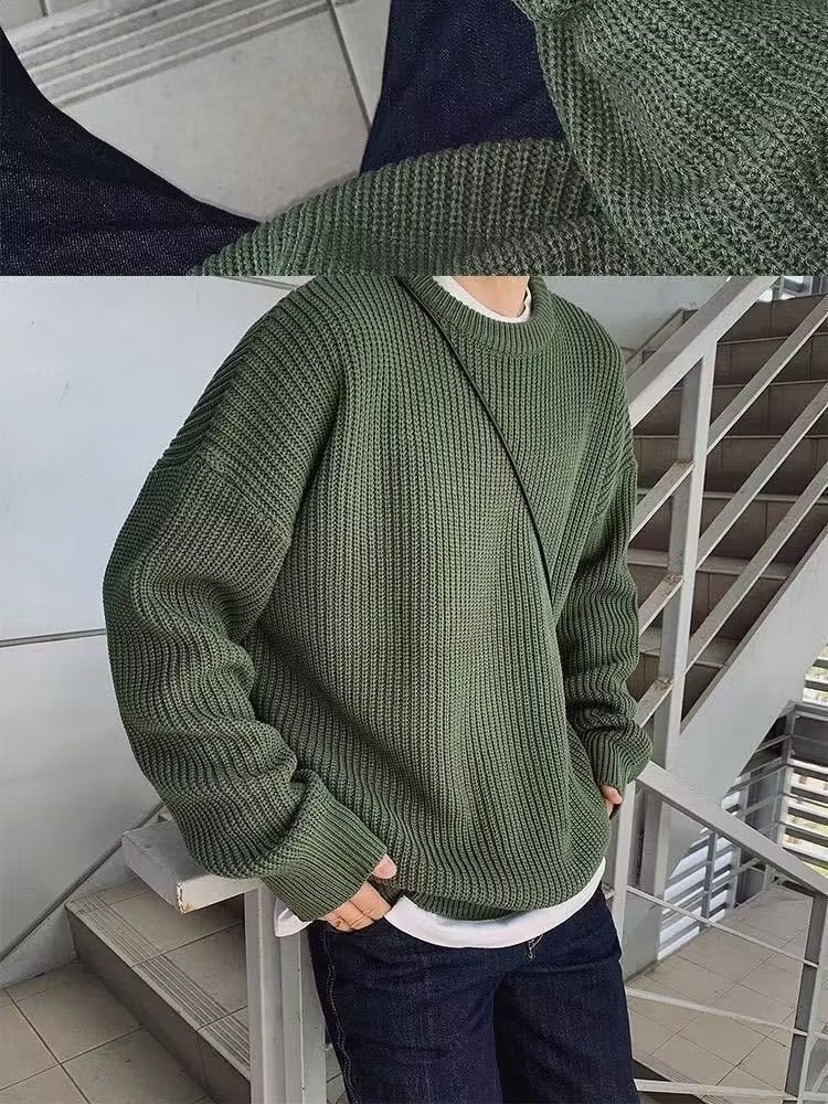 가을과 겨울 트렌디 브랜드 솔리드 컬러 내부 라운드 넥 스웨터 남자의 한국 스타일 느슨한 캐주얼 레트로 트렌디 스웨터 탑