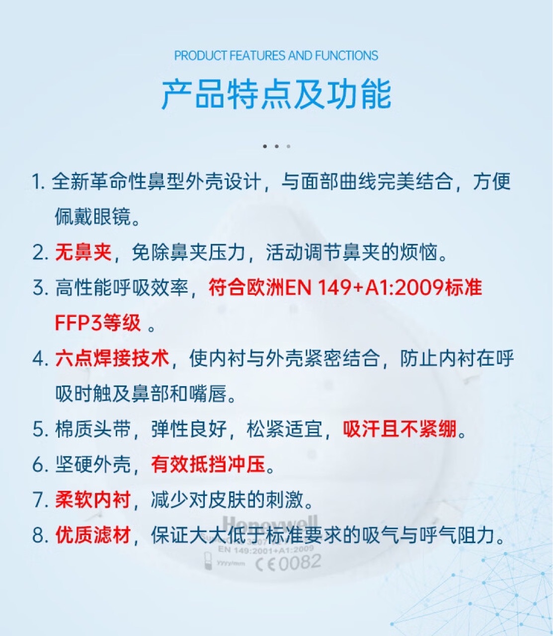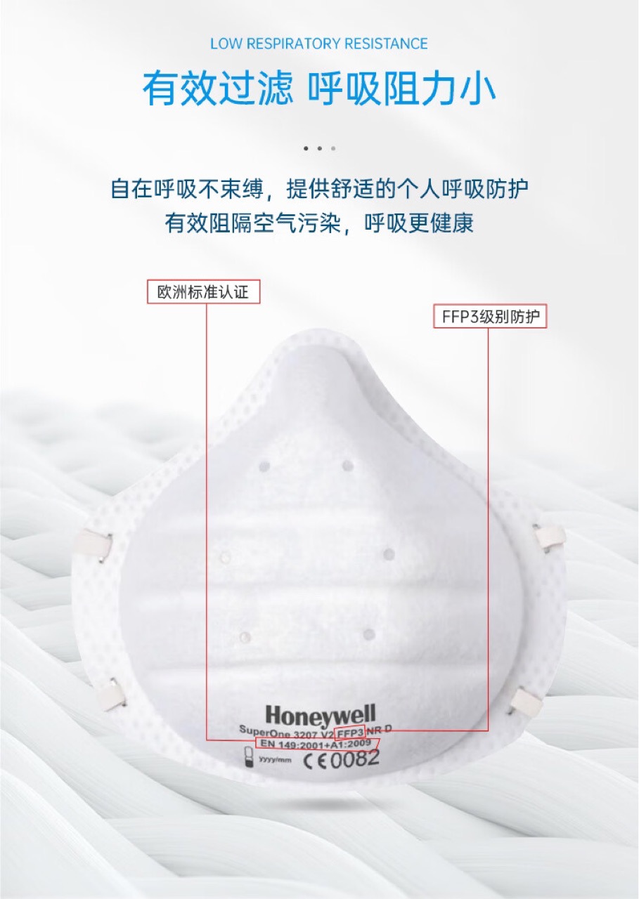 하니웰 1032501-V2 IP FFP3 유럽 표준 컵 헤드밴드 마스크 개별 포장