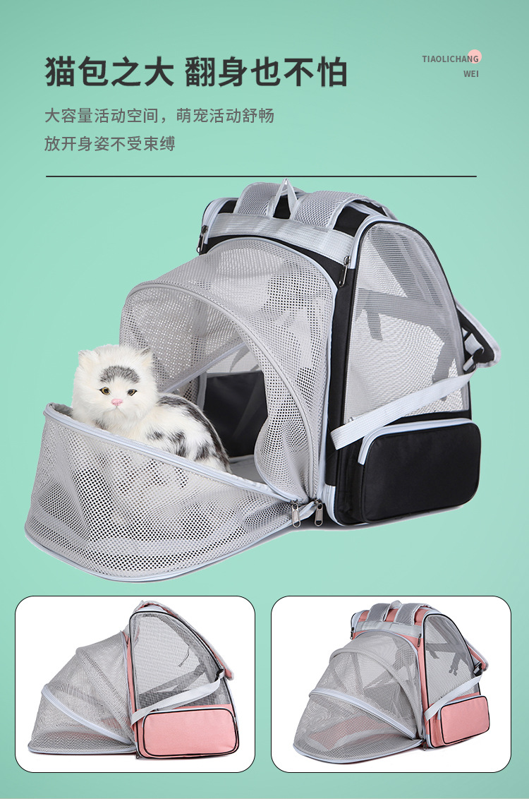 국경 간 통기성 애완 동물 배낭 확장 가능한 접이식 애완 동물 가방 고양이 배낭 휴대용 어깨 고양이 학교 가방 외출