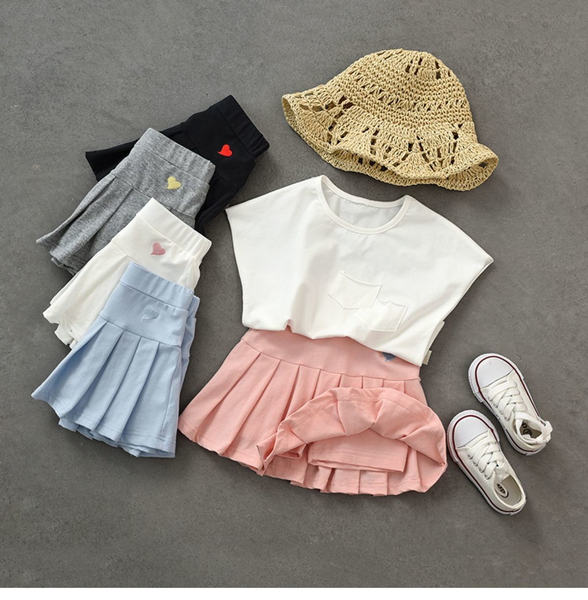 소녀의 여름 원피스 짧은 치마 아기의 서양 스타일 어린이의 개인 유행 브랜드 한국 스타일 사랑 모든 매치 플리츠 스커트 공주 치마스토어 가기