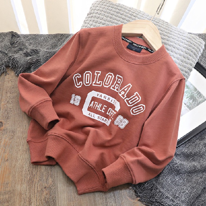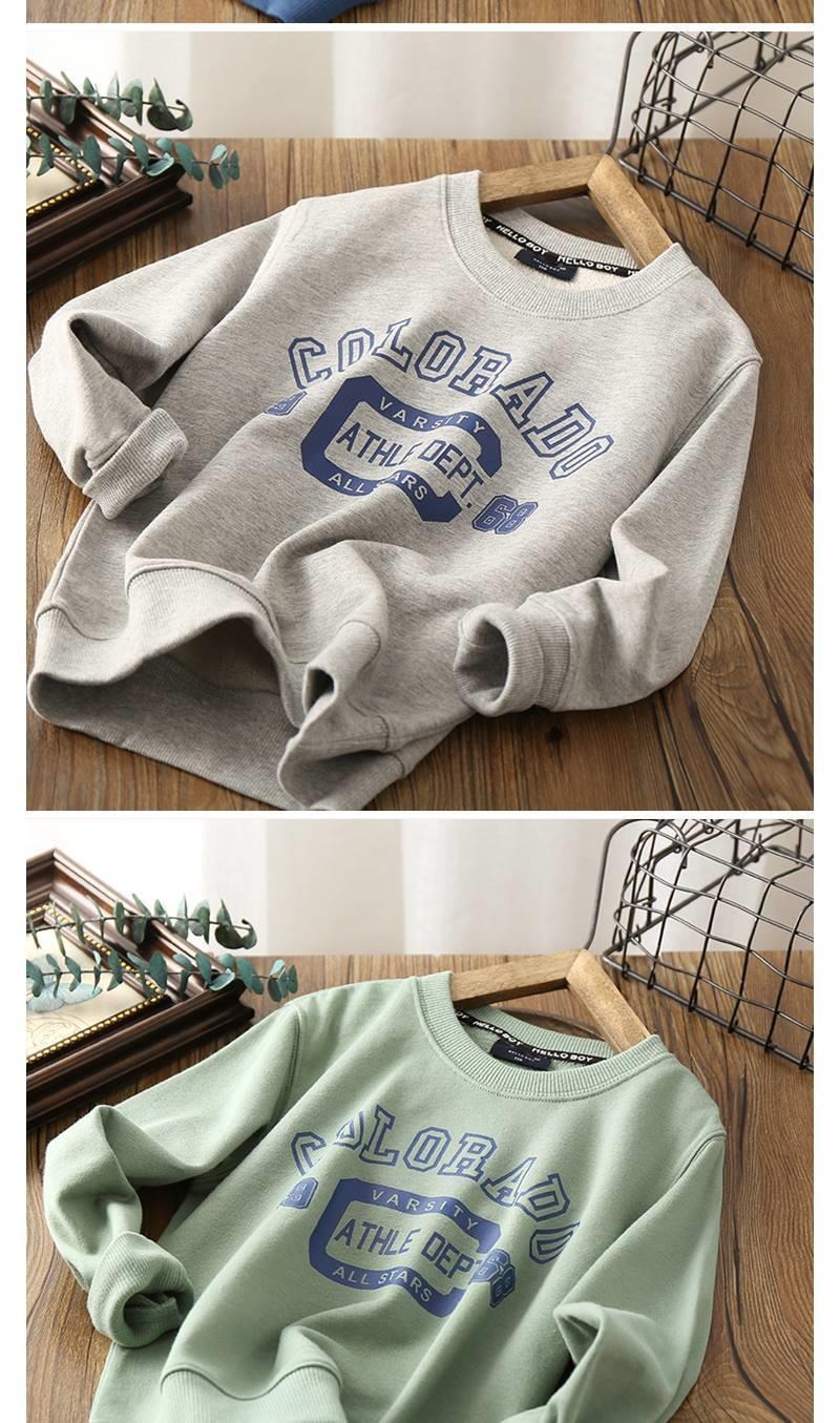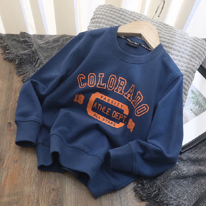 순면 남아 봄 가을 옷 레터 프린트 라운드 넥 루즈한 스웨터 잘생긴 만능 베이스 셔츠 트렌디 탑