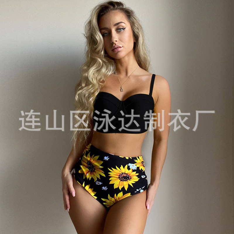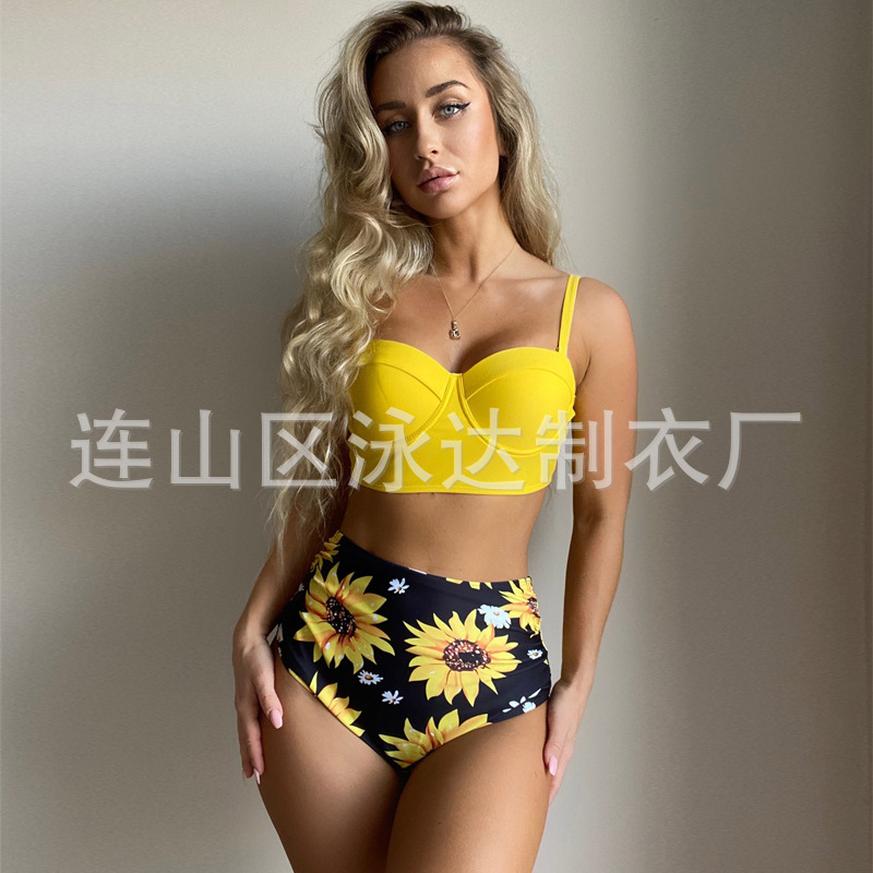 2022 새로운 비키니 섹시한 여성용 스플릿 수영복 유럽과 미국 비키니 하드 백 하이 웨이스트 수영복
