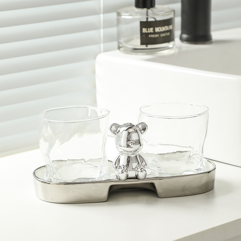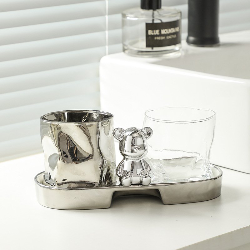 • 큰 머리 곰 구강 세척제 컵 3 종 세트 [실버 컵 + 트레이]]