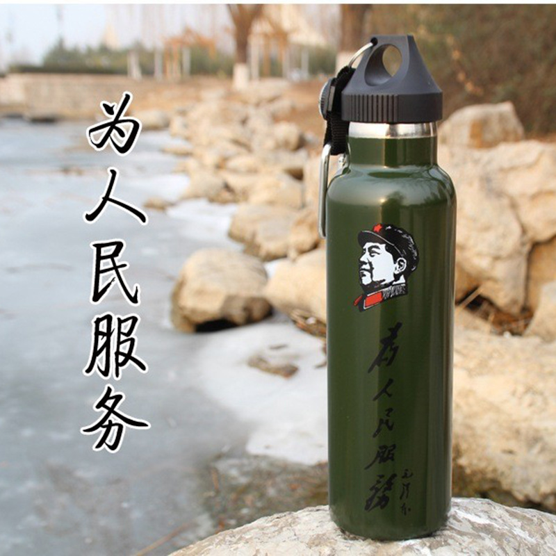 위장 워터 컵 카키 야외 스포츠 절연 물 컵 스테인레스 스틸 진공 컵 회장 마오 레이 펑 아바타 워터 컵