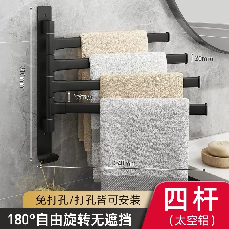 旋转毛巾架卫生间免打孔多杆浴巾收纳挂架浴室转角毛巾挂杆毛巾晾