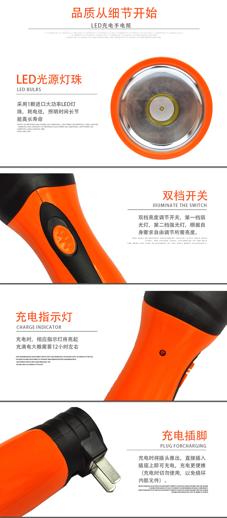 공장 직접 LED 밝은 손전등 충전식 가정용 옥외 조명 휴대용 손전등 도매