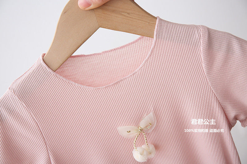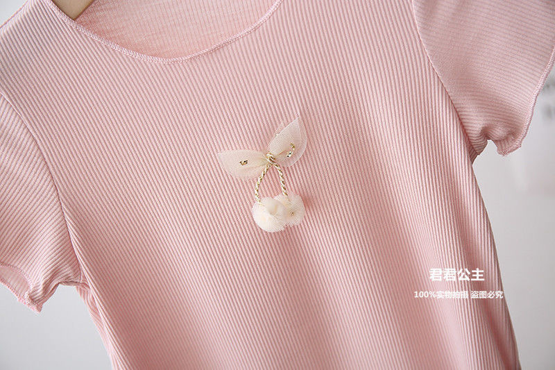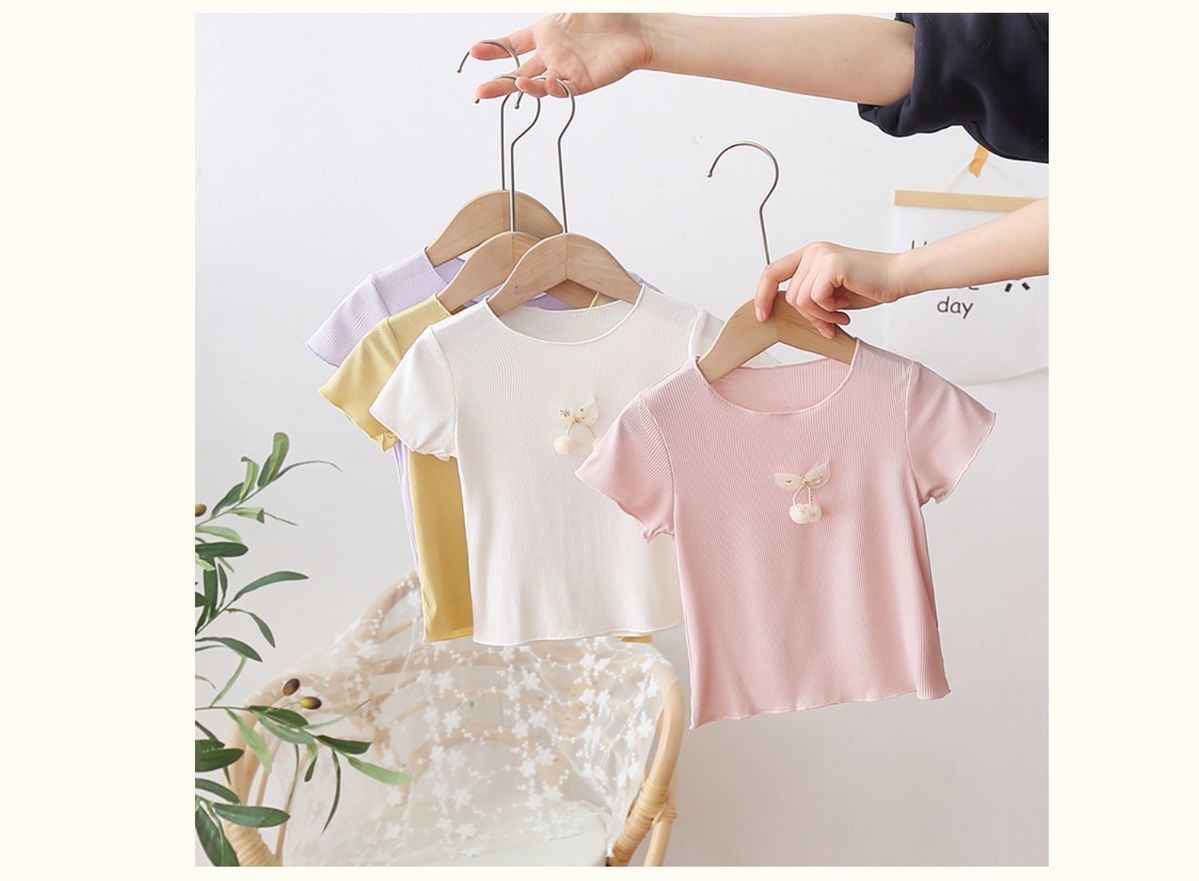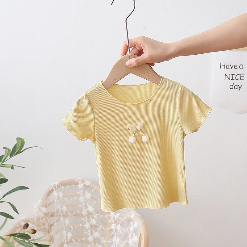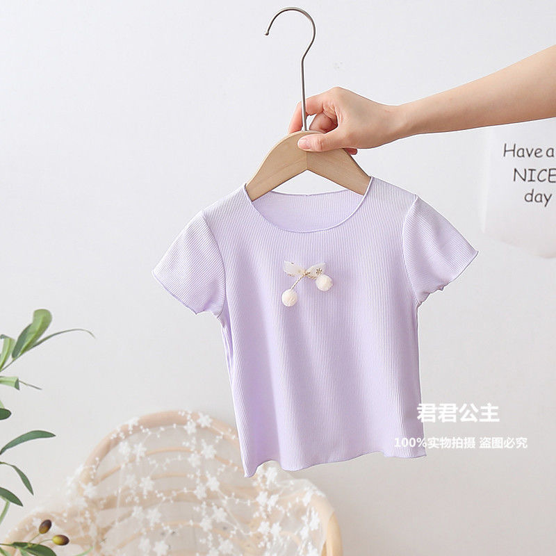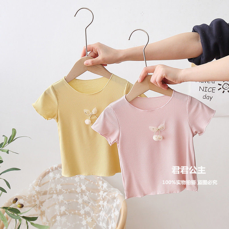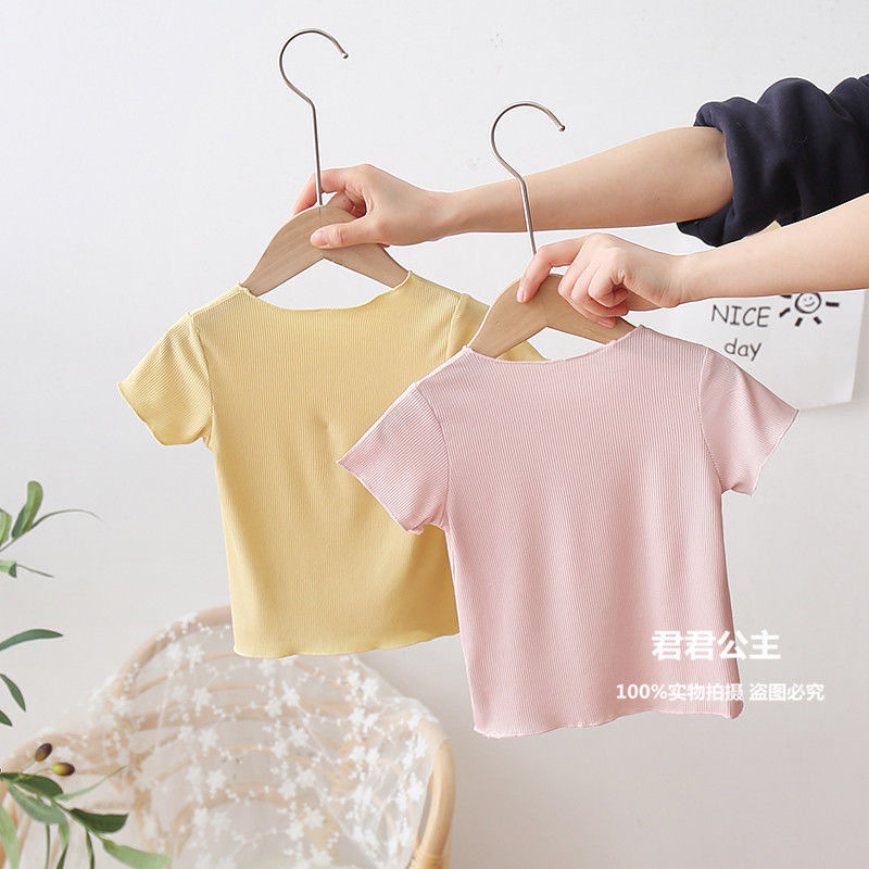 여아 아이스 실크 여름 새로운 통기성 반팔 솔리드 컬러 심플 모든 매치 캔디 컬러 어린이 티셔츠 어린이 탑스토어 가기