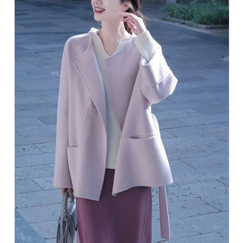 고급스러운 미니 원피스 설날 정장 드레스, 명사 스타일 풀세트 여성복 2025 신상 가을 겨울 보라색 모직스토어 가기