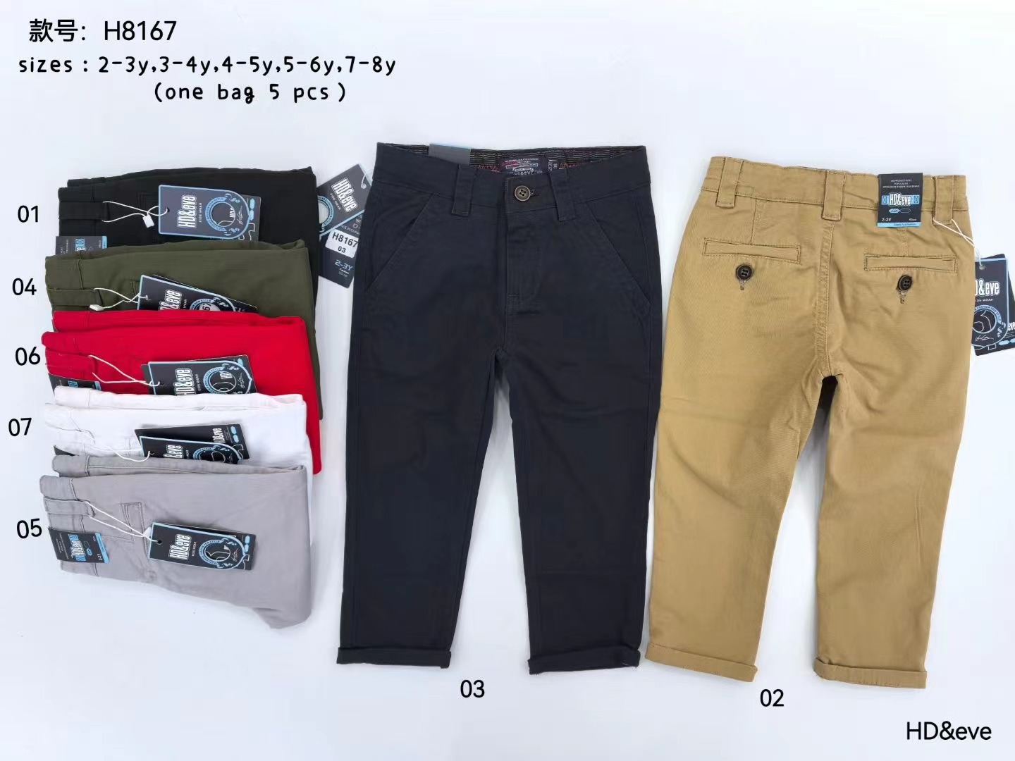 새로운 대외 무역 소년 캐주얼 바지 봄과 가을 바지 중간 어린이 2-8Y 아동복 바지 버클 멀티 컬러 어린이 바지 H8086
