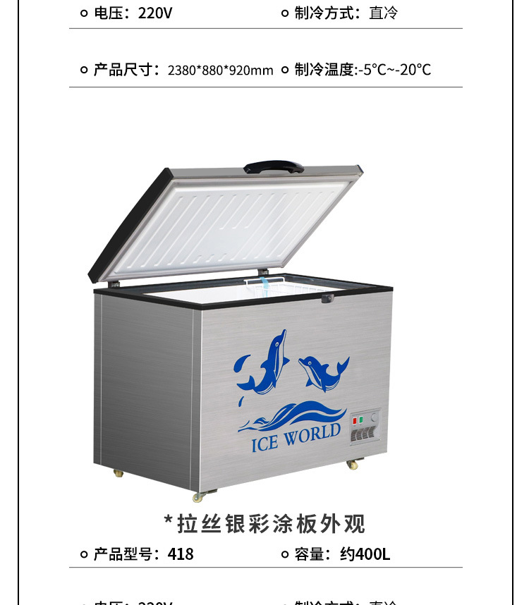 대용량 상업용 대형 냉동고, 가정용 수평형 에너지 절약 냉동고, 냉장고, 신선도 유지 냉동고
