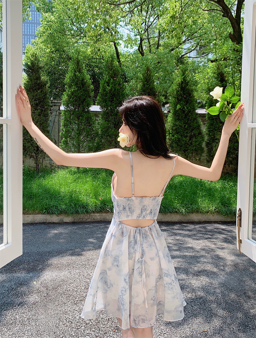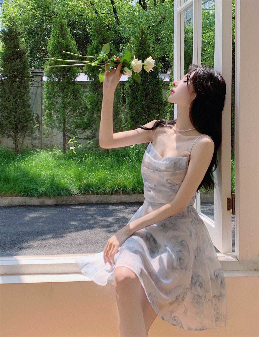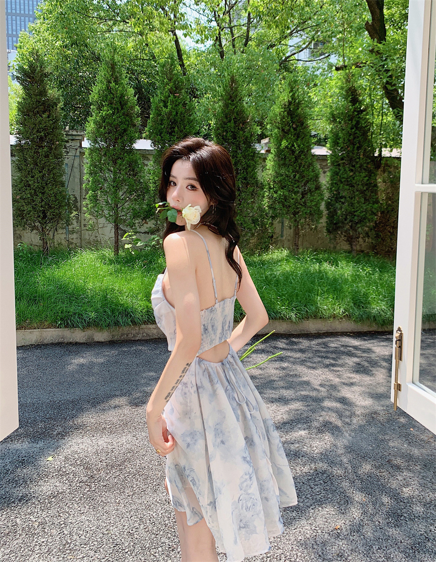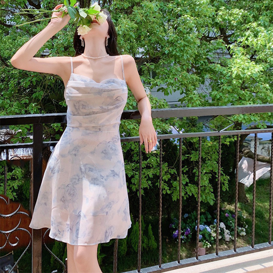 슈퍼 페어리 블루 슬립 스커트 여자의 여름 해변 휴가 하이 엔드 쉬폰 꽃 원피스스토어 가기
