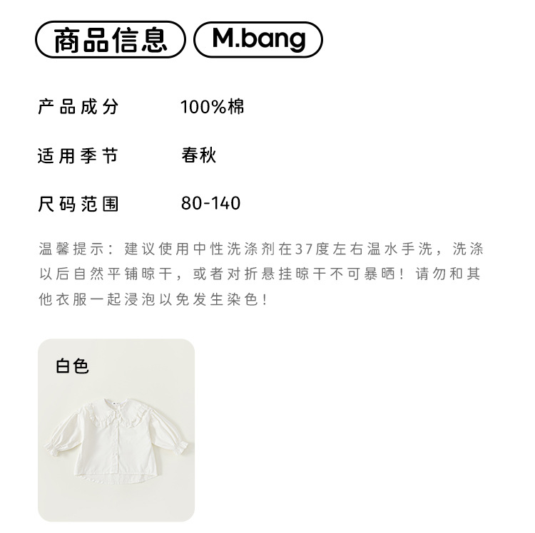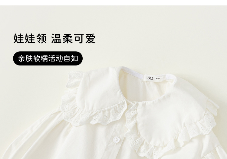 방선택 아동복 아동 셔츠 한국 스타일 레이스 칼라 여아 상의 2026 유아 셔츠 여아 흰색 셔츠스토어 가기
