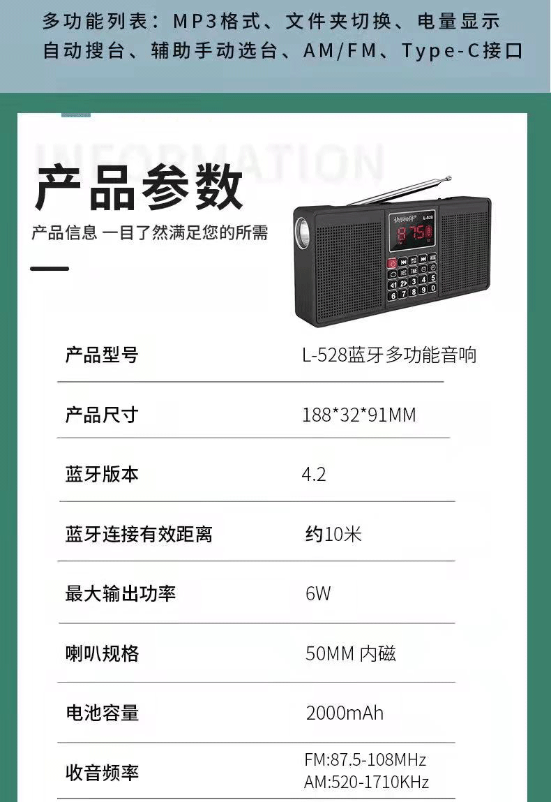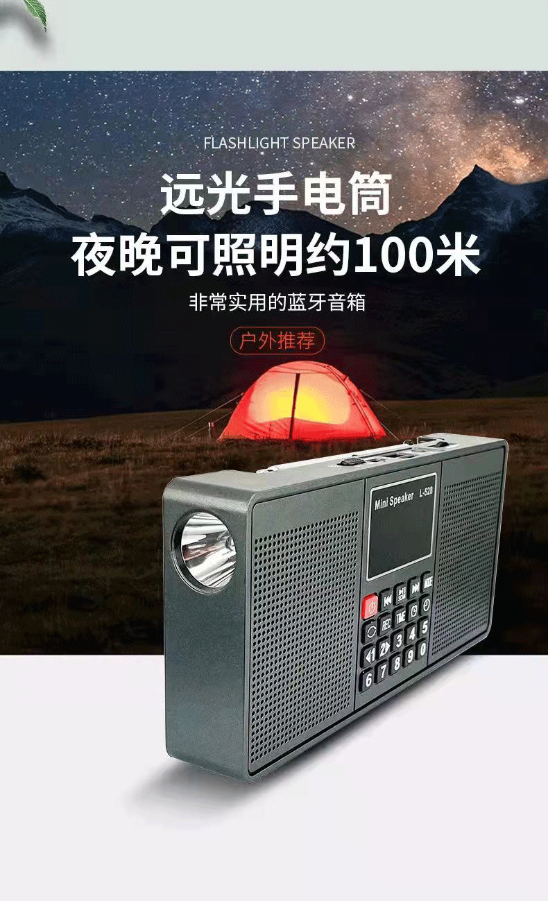 크로스 보더 L-528 블루투스 스피커 스테레오 카드 라디오 손전등 MP3 플레이어 휴대용스토어 가기