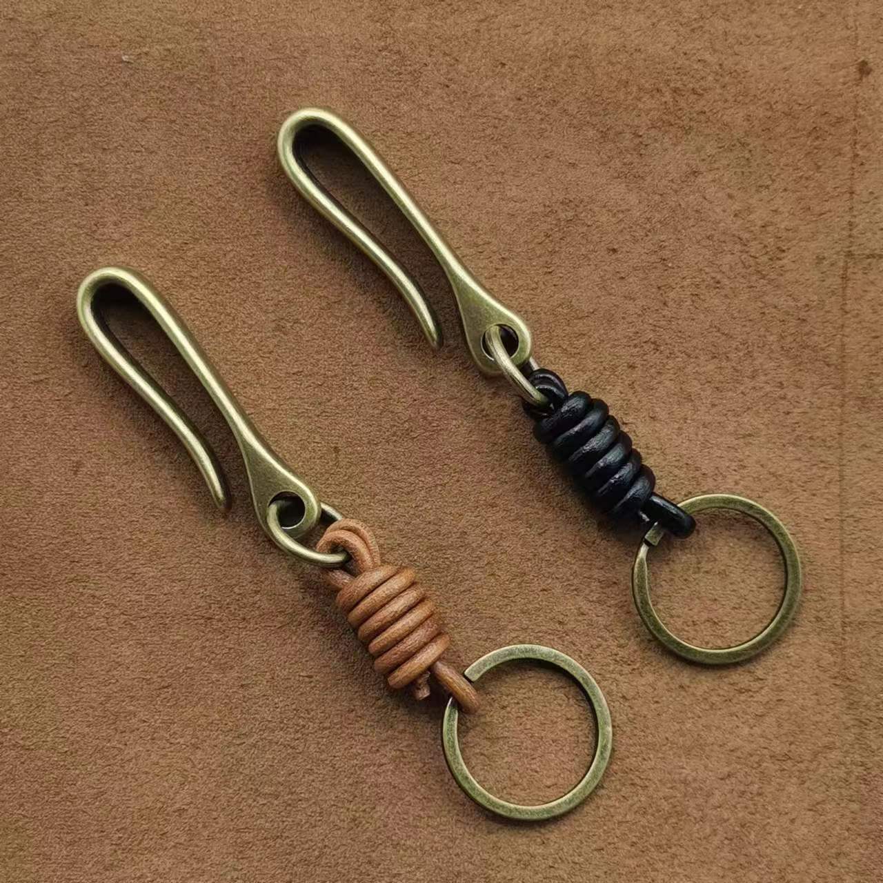 레트로 스타일 소가죽 키홀더, 독창적이고 심플한 자동차 키체인, 남성용 가방 장식