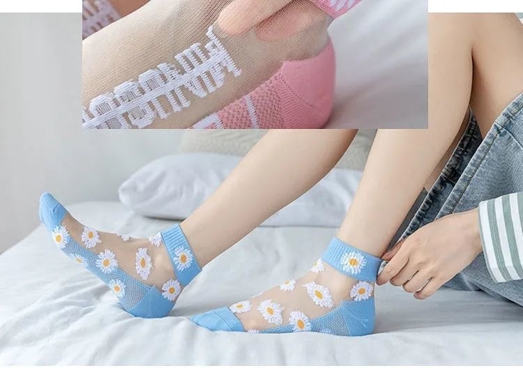 리틀 데이지 양말 여성용 한국식 짧은 양말 실크 스타킹 여성용 여름 얇은 크리스탈 양말 보트 양말 여성용 양말 커버 얕은 입 보이지 않는 양말