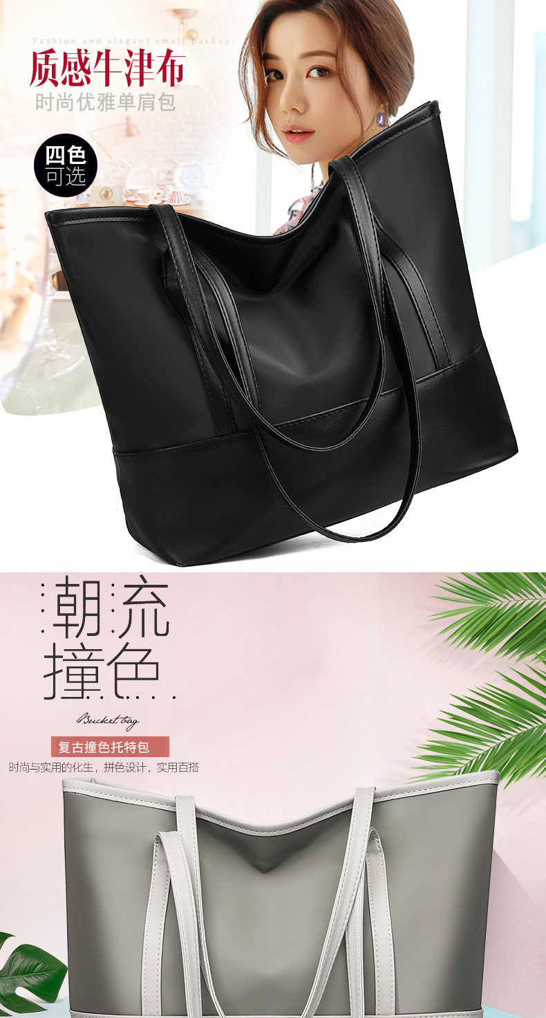 솔리드 컬러 옥스포드 천 대용량 토트 백 세련된 대비 색상 클래식 다용도 숄더백 한국 스타일 캐주얼 학생 클래스스토어 가기