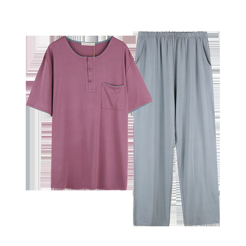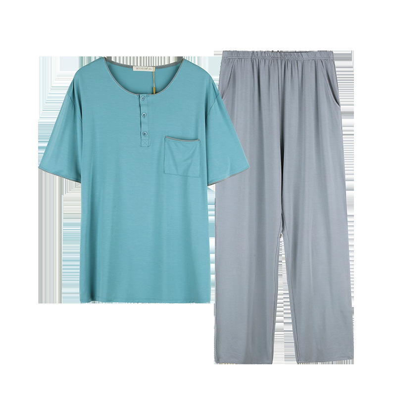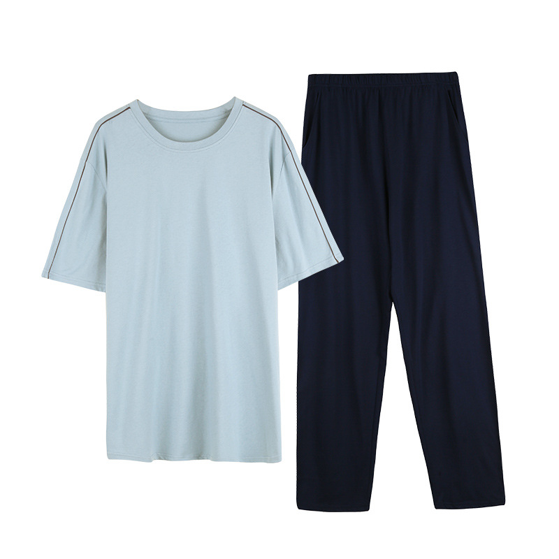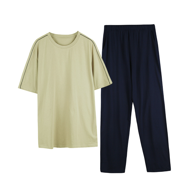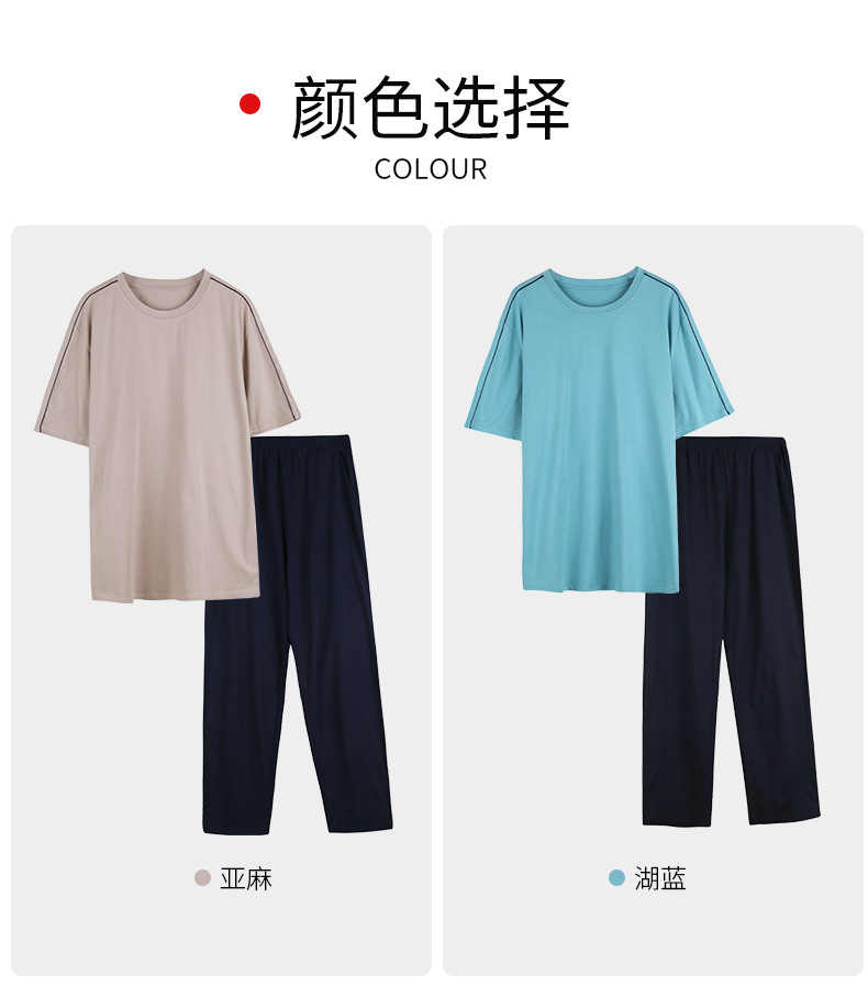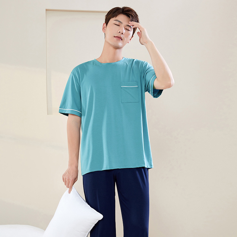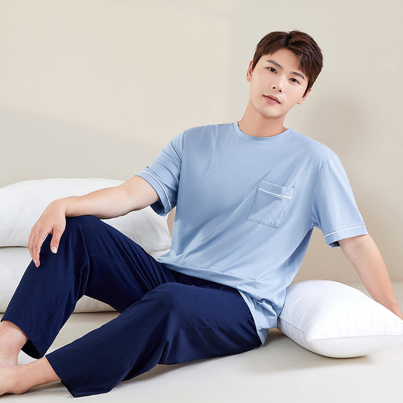 【다양한 스타일과 색상】남성용 잠옷 봄여름 반팔 긴바지 라운드넥 단색 홈웨어 세트(외출복으로도 가능)