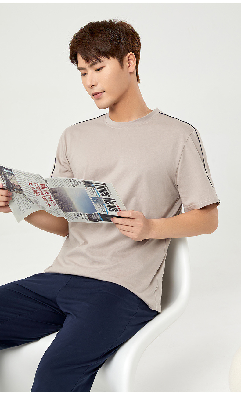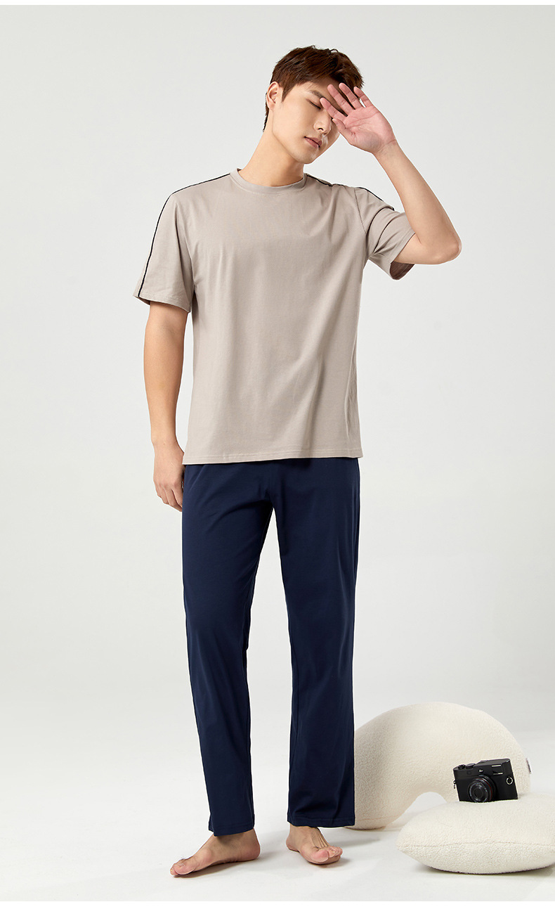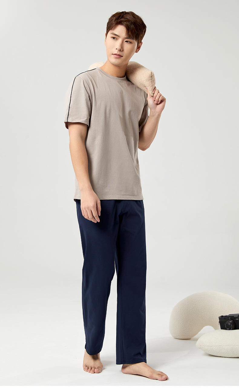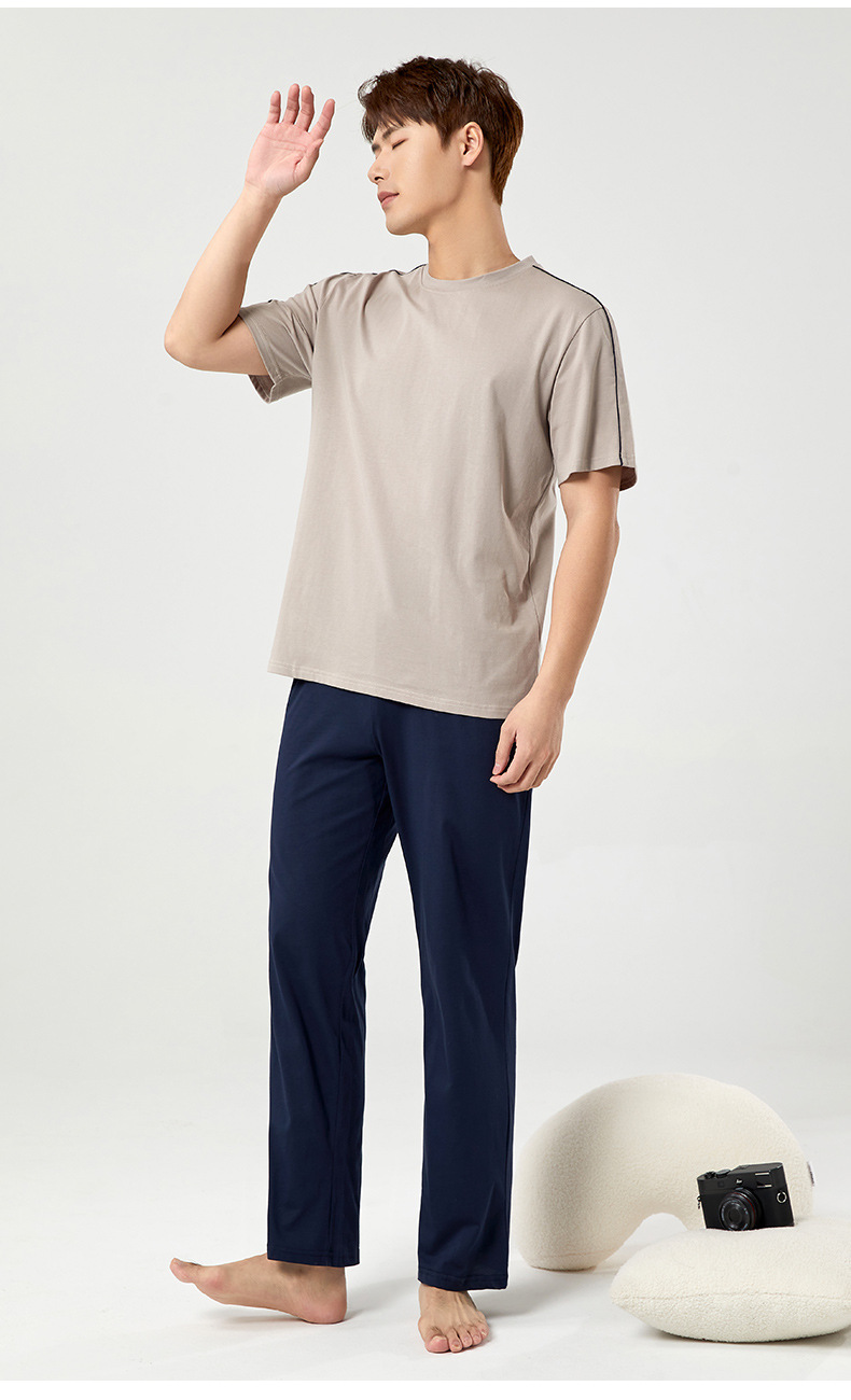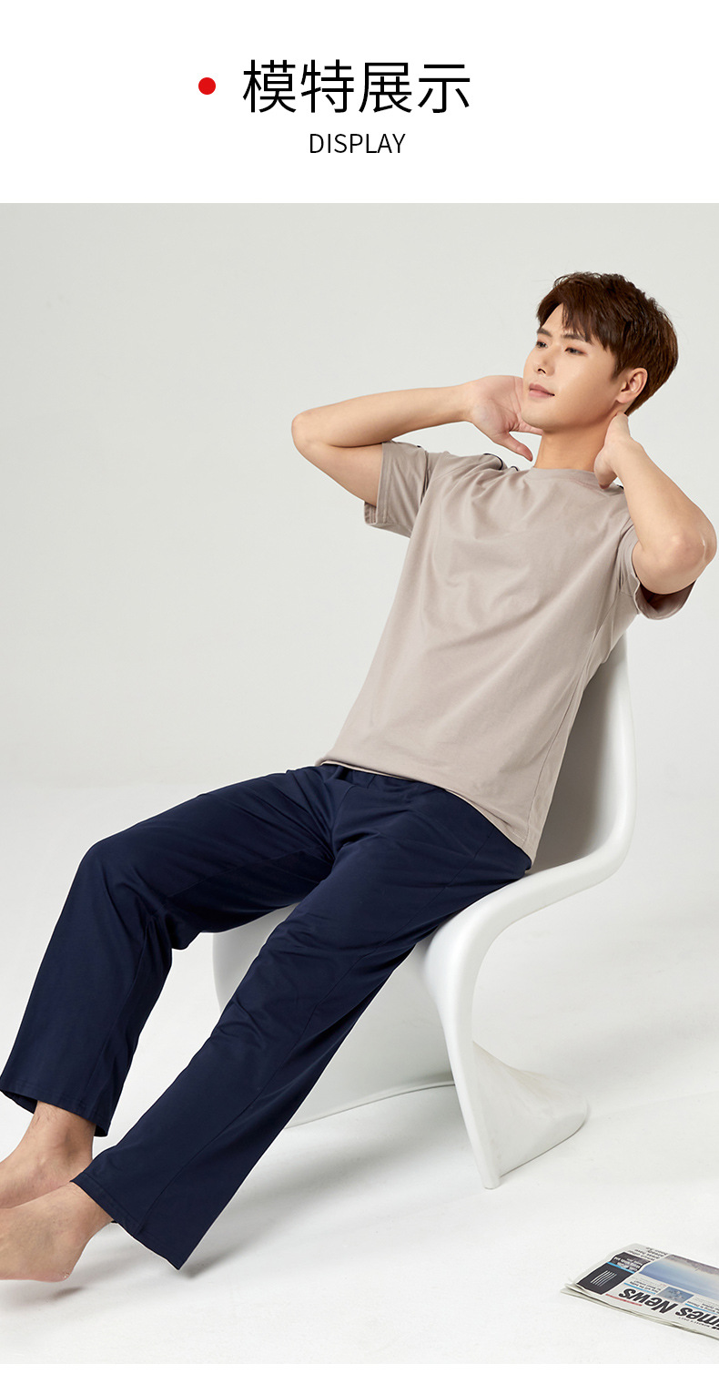 【다양한 스타일과 색상】남성용 잠옷 봄여름 반팔 긴바지 라운드넥 단색 홈웨어 세트(외출복으로도 가능)스토어 가기